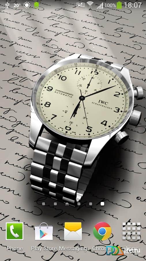 - Анимация часовой, минутной и секундной стрелки, а также даты