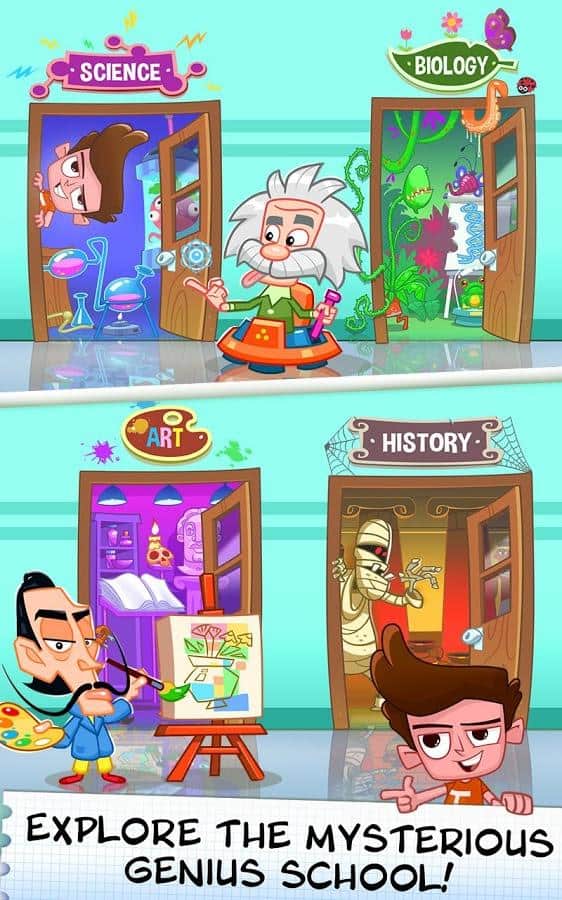 Cheating Tom 3 - Genius School – увлекательная игра на андроид, где вы будете помогать мальчику, окончить школу для гениальных детей. Наш герой так лихо научился списывать на экзаменах, что его посчитали гением и отправили в специальную школу. В этой школе творятся непонятные вещи, злой ученый хочет захватить весь мир, используя для этого умы одаренных детей. Вашей задачей будет помешать ученому осуществить свои планы, обманывать учителей, списывая на предметах и постараться закончить школу. Мастерски перемещайтесь от одного ученика к другому и старайтесь списать у них задания как можно быстрее. Впереди вас ждут 100 уровней, 2 неповторимых героя, 5 предметов и множество различных персонажей.