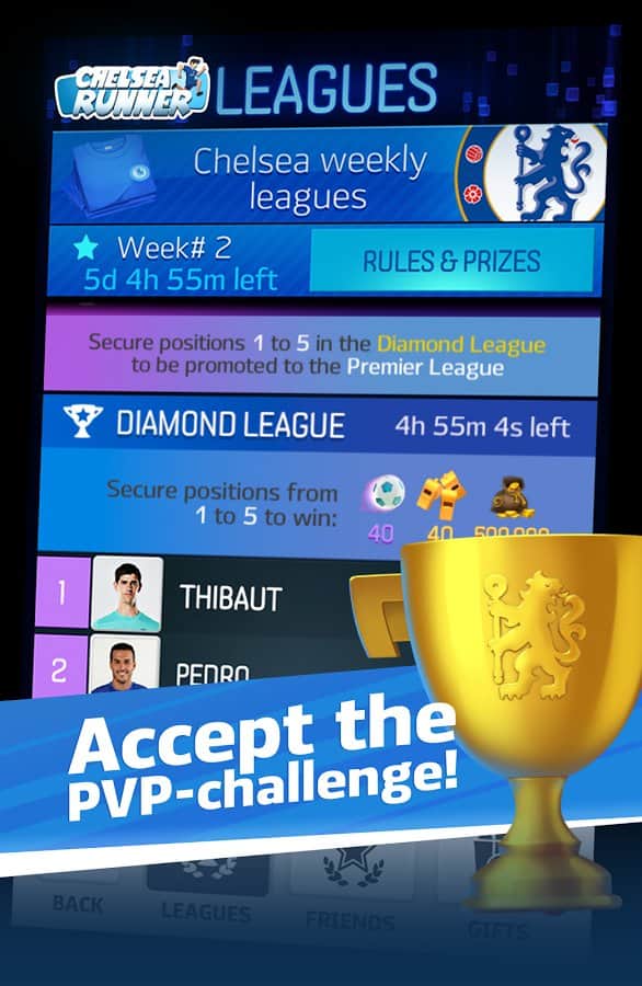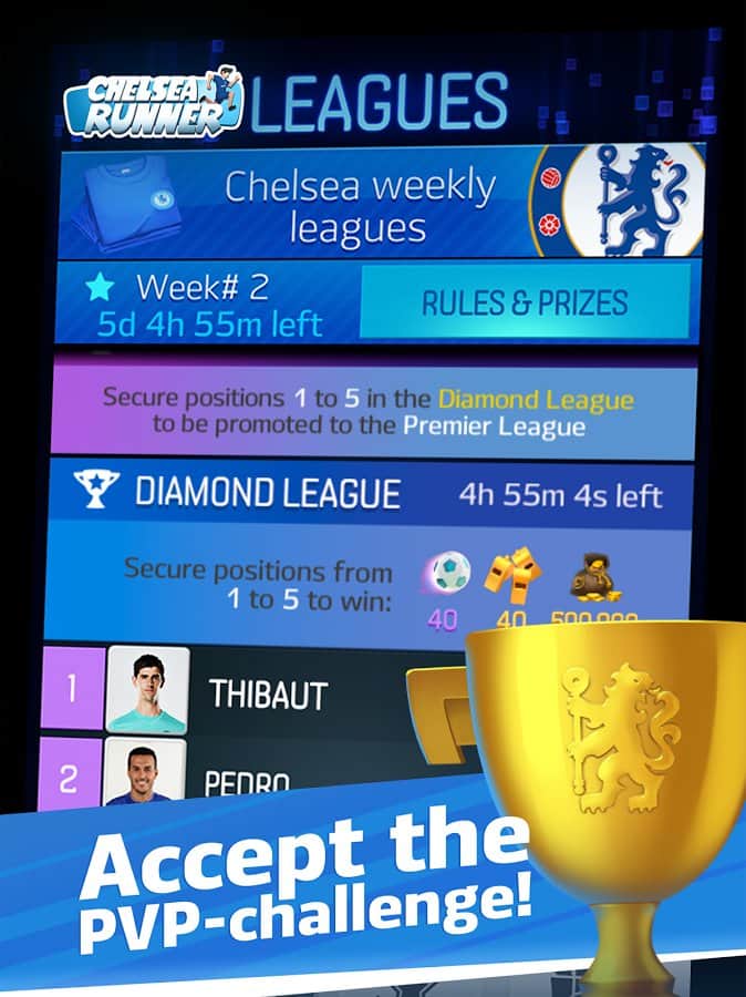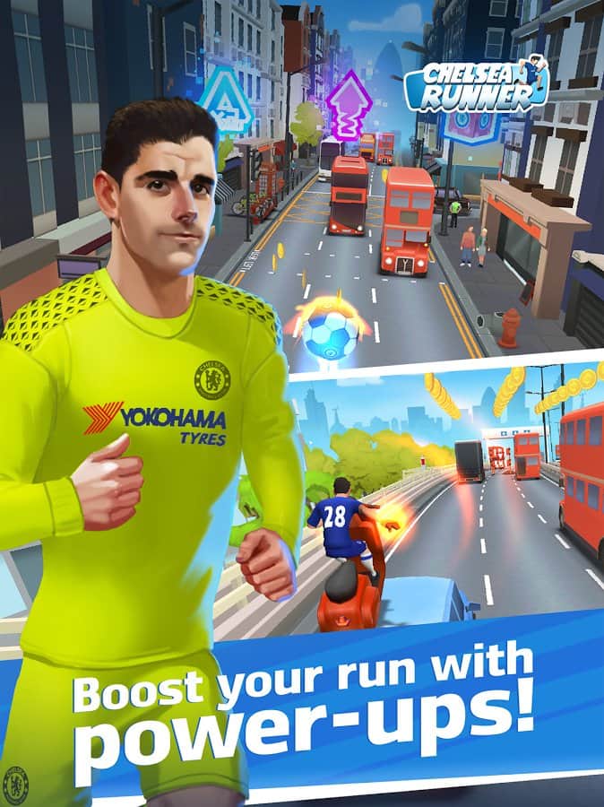 Chelsea Runner – раннер на андроид, в котором вы будете помогать футболисту из клуба Челси добраться до стадиона вовремя. Автобус нашего футболиста застрял в пробке, и наш герой решается бежать пешком до стадиона, обходя другие машины по пути. Бегайте по оживленным улицам Лондона, избегая многочисленных опасностей по пути, в том числе мчащихся машин, автобусов и других транспортных средств. Проведите своего игрока по опасному пути при этом, не забывая собирать золотые монетки и бонусы. Собирайте достаточное количество баллов и открывайте для себя новых известных футболистов и новые трассы.