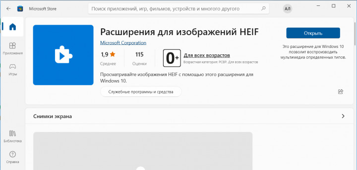 На файле, который нужно открыть, вызываем контекстное меню — Открыть с помощью — Фотографии. После этого вы увидите окно с уведомлением, что для открытия этого файла требуется специальное расширение. Вы соглашаетесь на переход в Microsoft Store и устанавливаете нужный плагин, на момент написания статьи он оценен в $0.99, хотя раньше распространялся на бесплатной основе. Также в маркете можно найти и другие, как платные, так и бесплатные кодеки для открытия и конвертации этого формата. После такой нехитрой манипуляции, файлы в формате HEIC будут открываться так же, как любые другие.