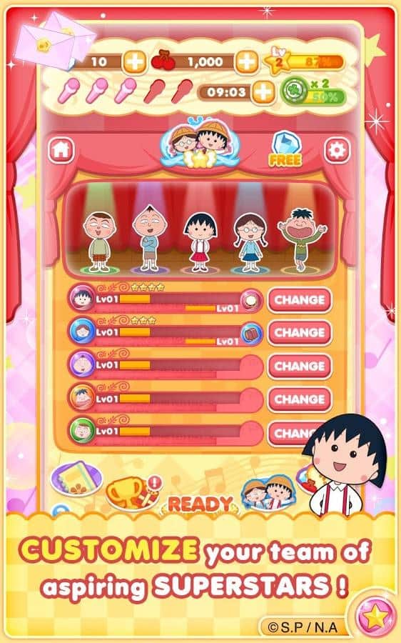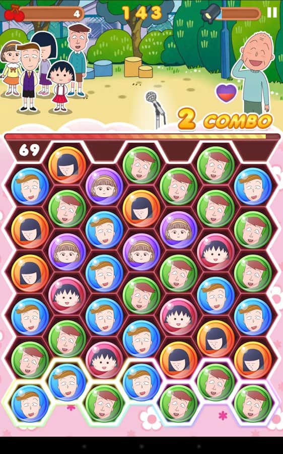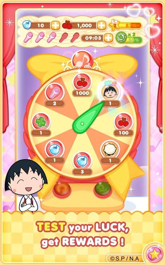 Chibi Maruko Chan Dream Stage – игра на андроид, где вы будете помогать милой девочке Маруко-тян выступить в теле шоу. Наша героиня давно мечтала поучаствовать в этом шоу, и теперь ей выдался удачный момент, помогите девочке показать свои таланты строгим судьям. Составляйте по три и более одинаковых изображений в ряд и убирайте их с поля тем самым помогая Маруко-тян выполнять различные задания. Наш героиня пришла не одна, а привела с собой своих друзей, которые тоже будут помогать ей выполнять миссии. Помогите девочке осуществить свою мечту и занять первое место. Применяйте все свои логические навыки и наблюдательность, чтобы составлять как можно длиннее цепочки из фигур. Игра порадует вас 30 известными персонажами популярных аниме, множеством различных уровней и многочисленными бонусами.