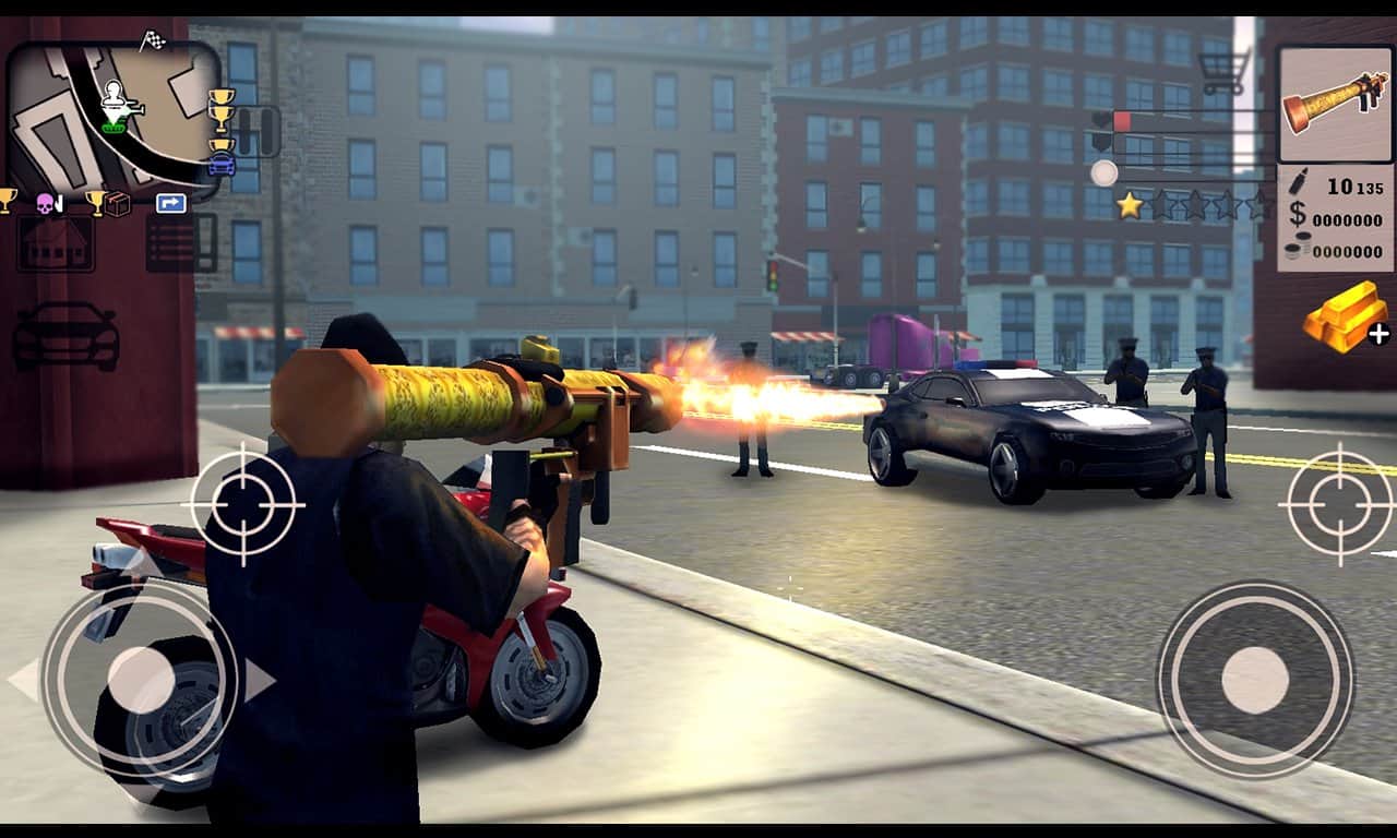 CHICAGO CRIME SIMULATOR 3D – экшен на андроид, где вы окажитесь в самом преступном городе Чикаго. В этой игре вы примите свое участие в битвах бандитов, мафии и полиции, за право владеть городом Чикаго. В этой игре вы должны добиться высокого положения и стать узнаваемой фигурой преступного мира. Выполняйте различные миссии и поднимайте свой авторитет в глазах конкурентов. Нападайте на банки и магазины, занимайтесь угоном дорогих иномарок, а также выполняйте заказные убийства своих врагов. Гоняйте по огромному миру этой игры на мотоцикле, машине или даже танке и уничтожайте бандитов, применяя для этих целей различное оружие. Уходите от преследования полиции и ведите по ним непрерывный огонь.