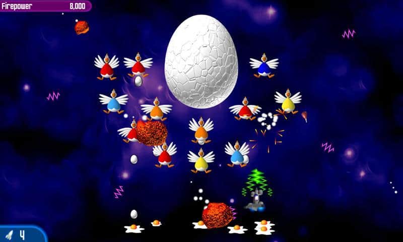 Chicken Invaders 2 - вас ждет классика аркадного жанра для андроид. На сей раз вам надо отбиться от полчищ куриц, заполонивших космическое пространство. Используйте все, что есть в арсенале - пулеметы, ракеты, лазеры и просто уклонение от удара. Уничтожить нужно всех представителей пернатых, а также сразиться с боссом! Кроме простых домашних куриц вас еще ждут астероиды и прочие препятствия! Кроме неприятностей есть и бонусы - из куриц выпадают яйца, аппетитные окорочка и много других разностей, упрощающих геймплей! Ну и помимо всего перечисленного игра еще отличается яркостью, красочностью и приятным интерфейсом!
