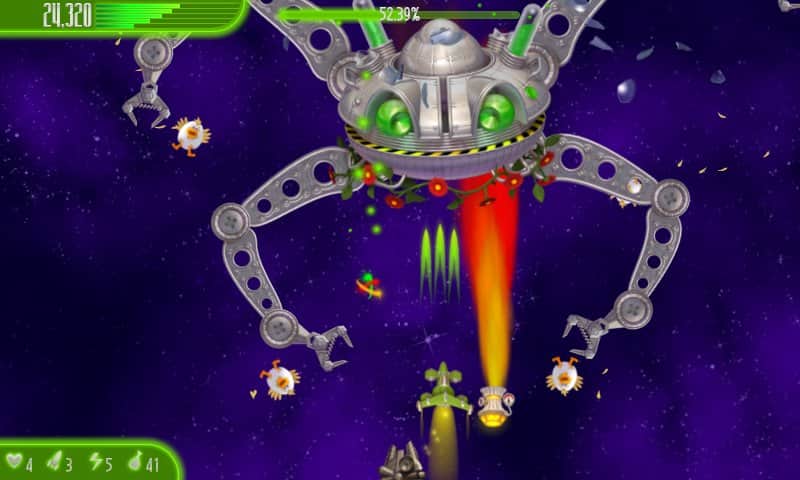 Chicken Invaders 4 Easter – все хорошо помнят день вторжения. Воспоминания всё ещё теплятся глубоко внутри. Всё ясно - это месть за обалденно вкусные пряные крылышки, которые мы так чудесно умеем готовить. Они пришли без предупреждения, их взъерошенные перья затмили солнце… Вторжение куриц началось, они будут мстить всему человечеству за угнетение, расчленение и приготовление во фритюре их младших собратьев, а за эксгумацию и поглощение костей собаками они готовы испепелить всю нашу планету. Три предыдущих вторжения были отбиты, в этот раз я отправлю кур обратно в их логово, а после этого пойду в свою любимую кафешку наслаждаться вкусом двойного куриного бургера, закусывая хрустящими крылышками и запивая сладкой газировкой.