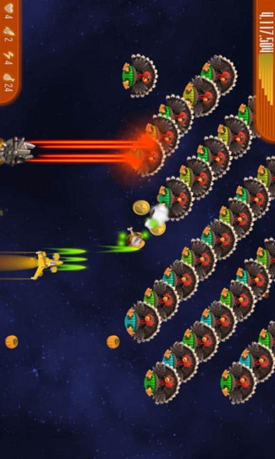 Chicken Invaders 4 Thanksgiving - завораживающая космическая аркада-экшен для windows phone про вторжение индеек на планету Земля. Всем известно, что на день Благодарения, в Америке принято готовить индейку. Эта многолетняя традиция и стала началом великого восстания индеек и их объединения с целью отомстить человечеству. Вам предстоит принять участие в великой битве против пернатых за выживание!