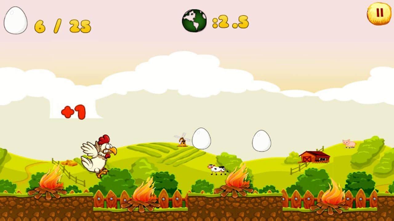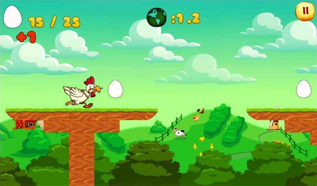 Chicken Run – очень медлительный, но всё же раннер. В игре рассказывается простая и незамысловатая история одной курицы, которая хочет сбежать с местной фермы, так как узнала что в скором времени её могут пустить на наваристый куриный супчик для всей семьи добродушного фермера. Такой раскад событий курицу естественно не устроил и она решила сбежать. Пробираясь сквозь орду работников, костры и другие препятствия она надеется что выберется из этого куриного ада. Бегает она сама, вам лишь можно управлять её прыжками да небольшим полётом. Нажинаем на экран в нужное место и курица перепрыгнет препятствие, а если свалится на голову фермера, то его можно даже оглушить.