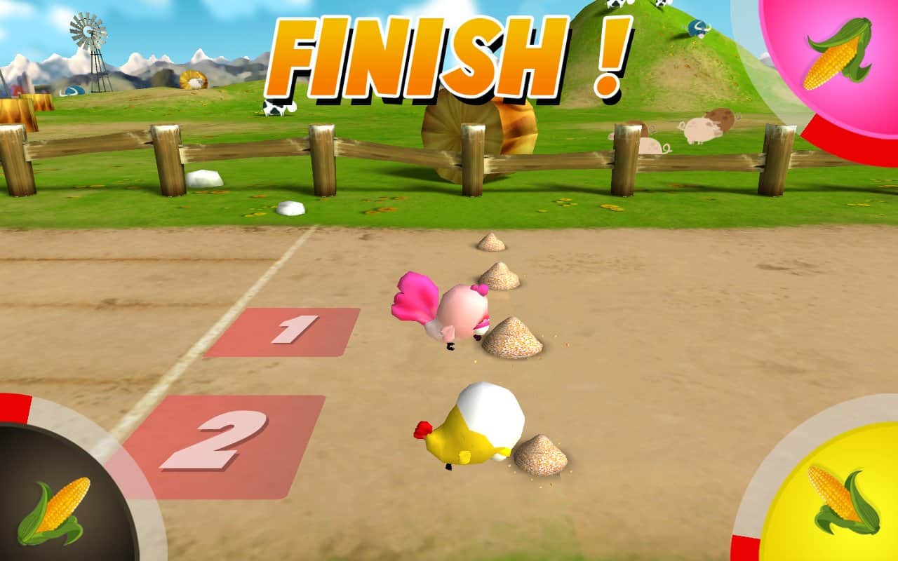 Chick'n Speed - Куриные бега это не только забавное но и весьма сложное занятие. Эта игра довольно простая, однако имеет несколько сложных моментов. Первое это то что забеги здесь весьма эпичные, но при этом необходимо хорошо контролировать бег самой курицы. Конечно же курицы не совсем обычные, и выглядят весьма странно, однако бегать весьма забавно. Управлять ими довольно просто, нужно жать всего лишь одну кнопку, а ещё к тому же играть можно в 4-ом на одном смартфоне. Если же играть не с кем, тогда поставьте против себя компьютер.