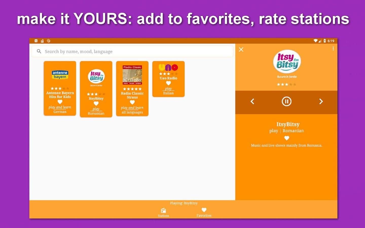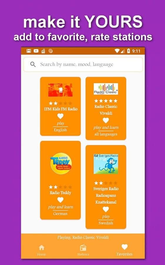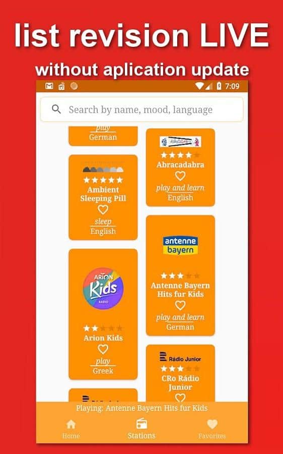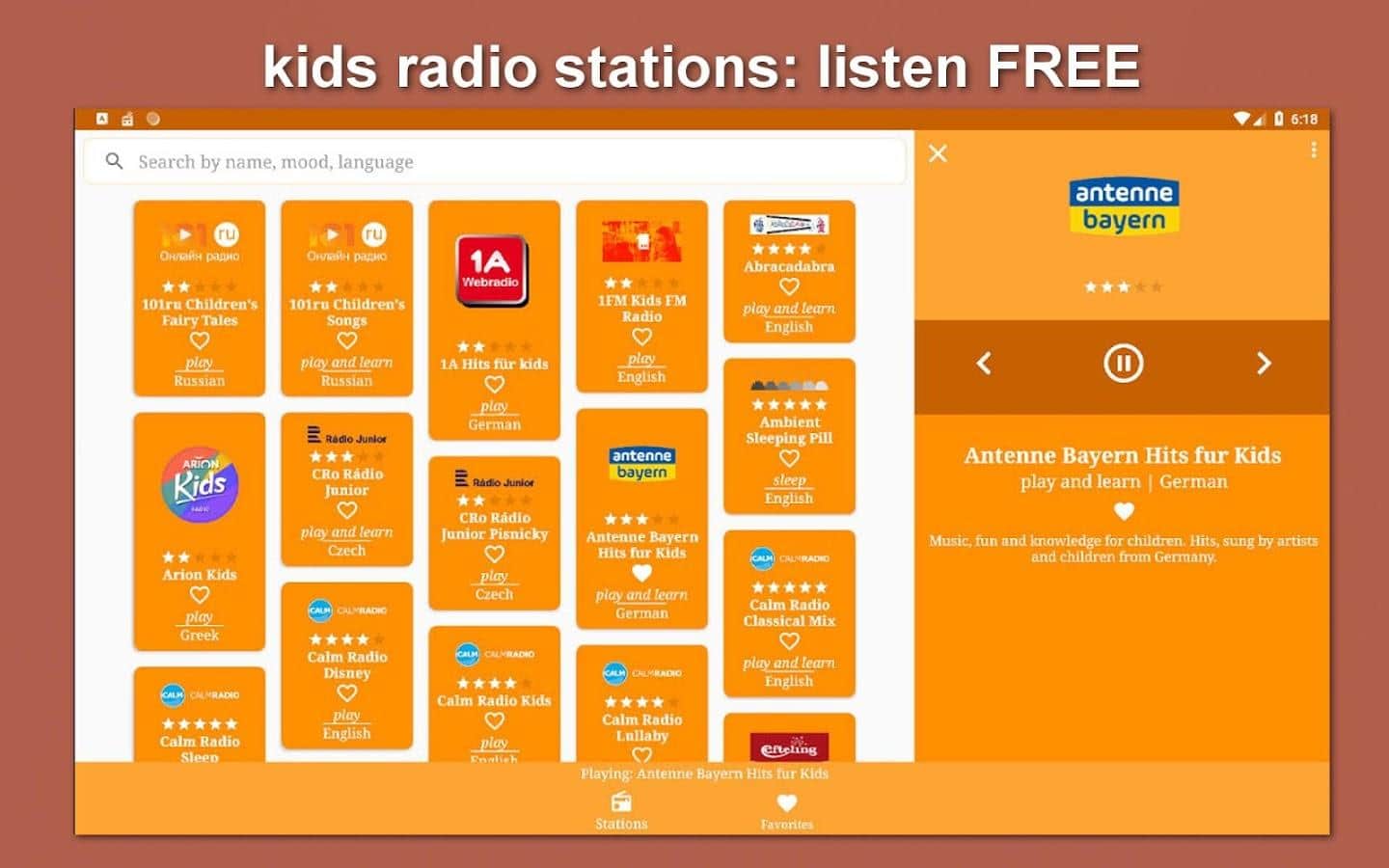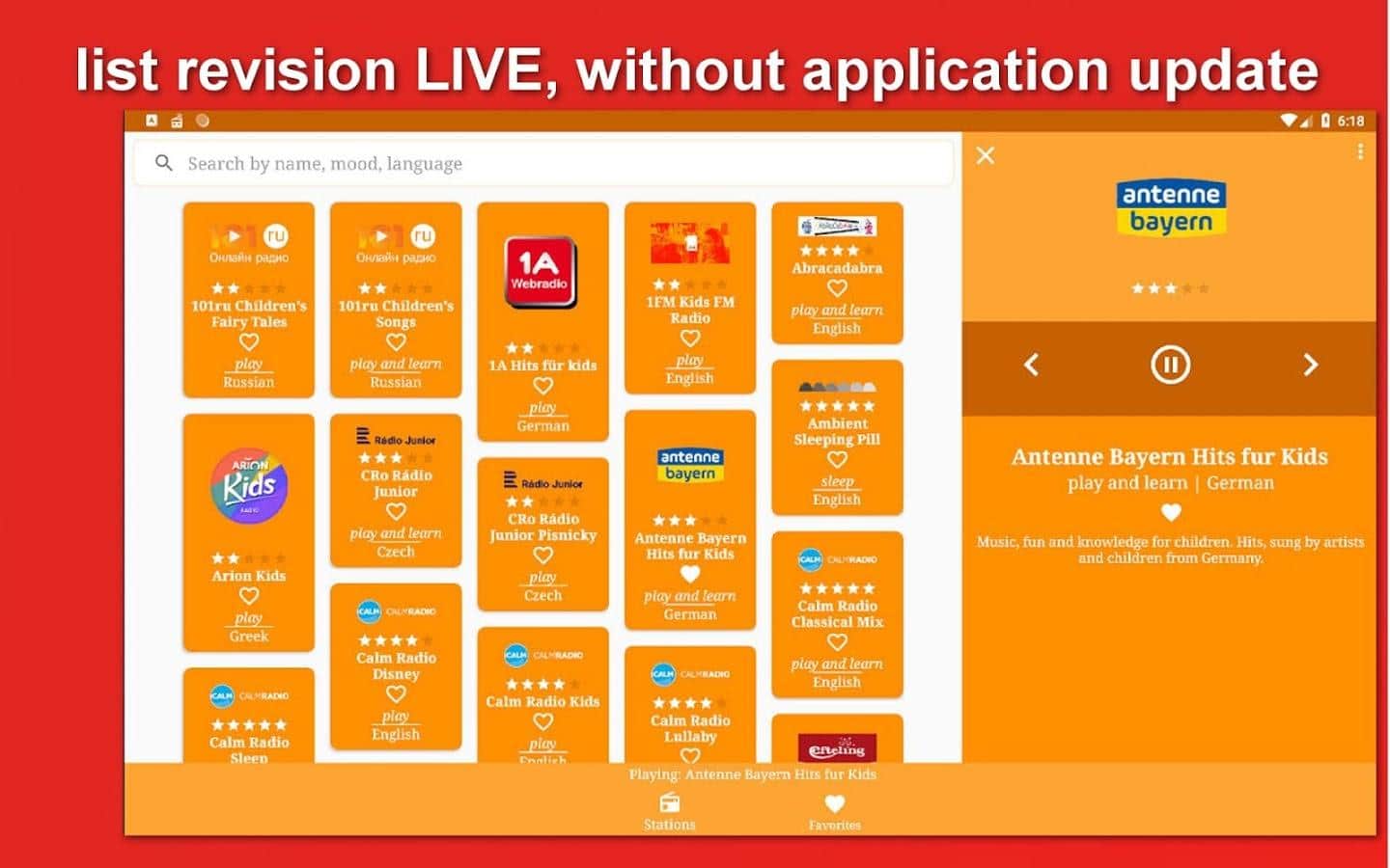 Слушайте детские радиоканалы, пользуйтесь бесплатными объявлениями и следите за системой оповещения вместе с Child Radio Tuner Pro.