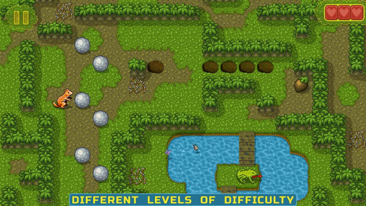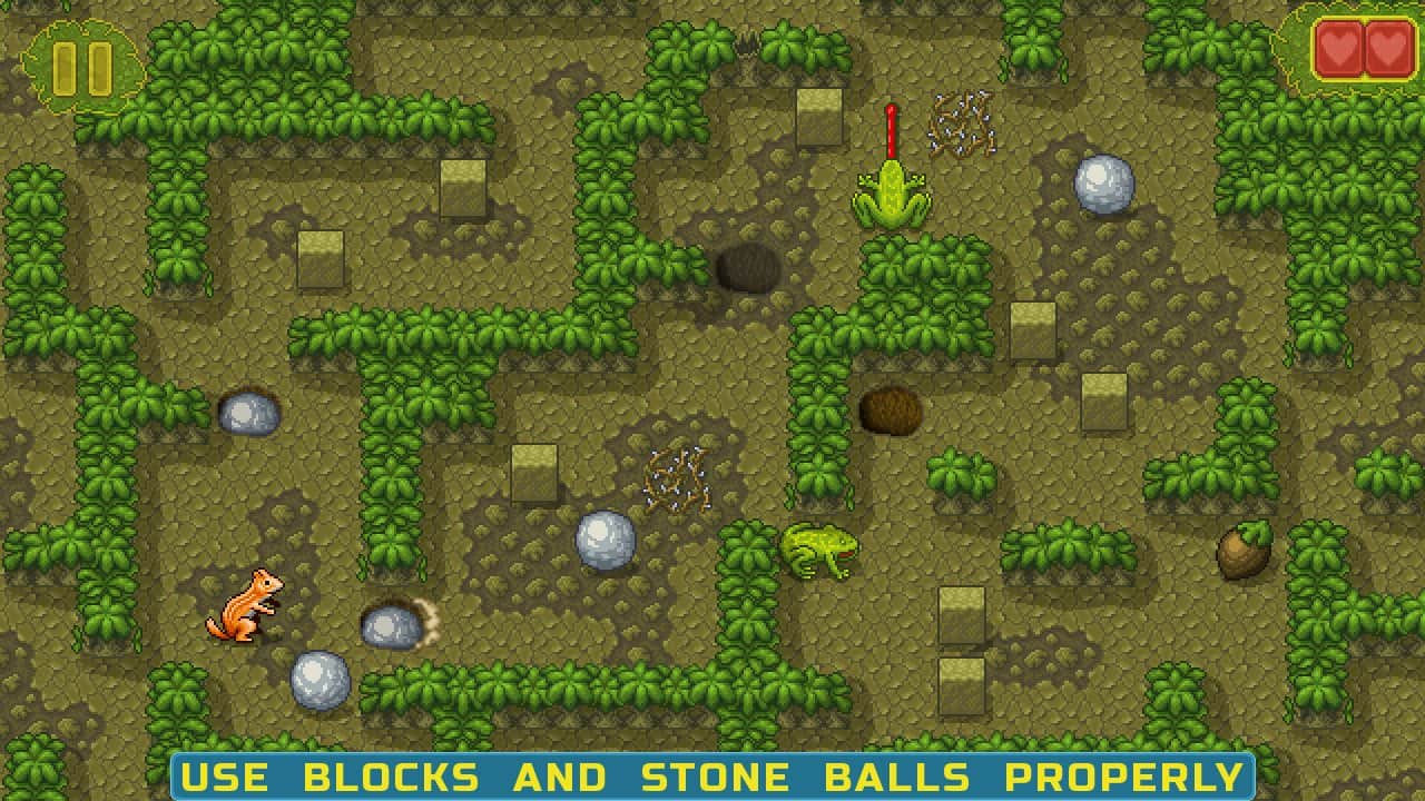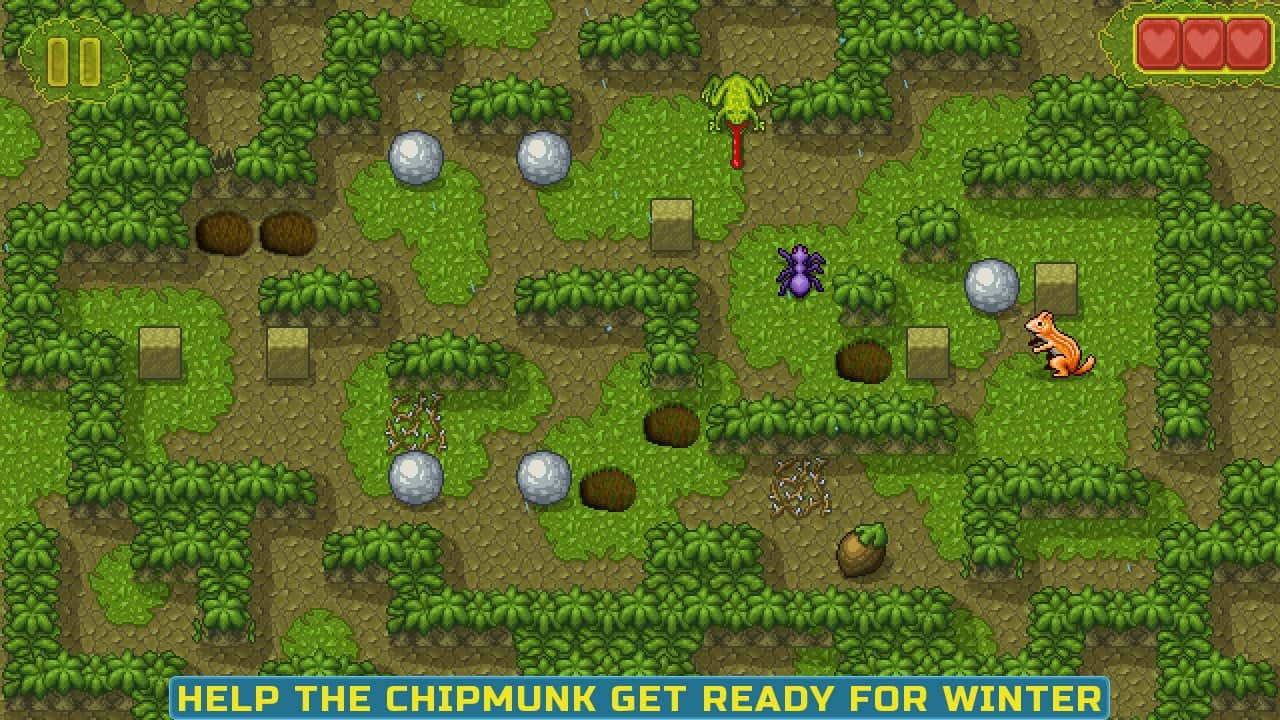 Приключения Бурундука: логические игры головоломки - увлекательная игра головоломка геймплей которой построен на основе популярной игры Сокобан, но на этот раз разработчики решили разбавить геймплей элементами приключения. И так, вам предстоит играть в роли забавного бурундука, по задумке авторов в игровом мире приближается зима и вам необходимо запасти провиант на долгие холодные месяцы. Однако игровой мир полон опасности, вам же при помощи камней и кубиков необходимо закрывать ямы, уничтожать врагов, обходить ловушки, при этом конечно же собирать орехи и ягоды. В игре Приключения Бурундука хорошая графика и возможность выбора различных режимов сложности что позволит каждому подобрать подходящий.