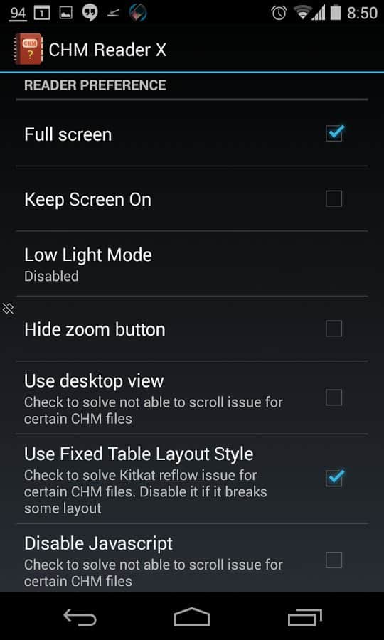 Поддержка использования кнопок Громкости для перемещения по страницам Ассоциация с CHM/HTML файлами в Проводнике. (Работает только с некоторыми диспетчерами файлов, например: OI File manager)