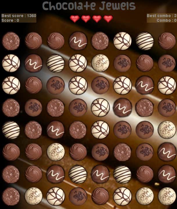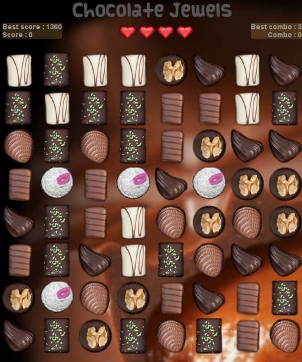 Обязательно нужно запастись шоколадом, пока загружается приложение Chocolate Jewels. Графика настолько реалистичная, что прикосновение к экрану может оставить след шоколада на пальце. Смысл же прост и привычен, ведь это казуальный проект 3 в ряд, когда нужно собрать в одном ряду как можно больше одинаковых кусочков изделий и насладиться моментом, когда он превращается в определенное количество очков. Громадный ассортимент кондитерских изделий не оставит равнодушным и заставит полюбить шоколад даже того, кто до момента начала игры не находил в нем ничего особенного.