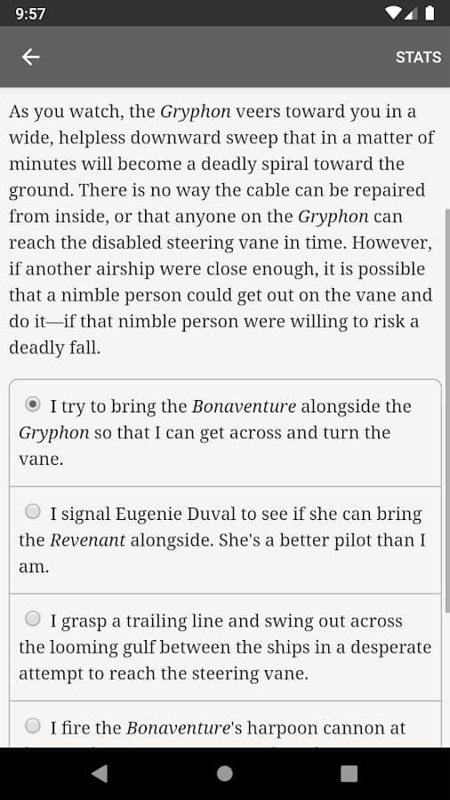 Choice of Games – коллекция интерактивных игр на андроид, где вы найдете огромную библиотеку жанров. В этой игре вы сможете выбирать какую историю вы будете разыгрывать. В этом интерактивном романе множество жанров от боевиков и приключений до драмы и юмора. Игры основаны только на тексте, и вы не найдете в них графики и звуковых эффектов, а интерес к ним будет подпитываться вашим воображением. Выбирайте свою историю и погрузитесь с головой в увлекательный сюжет.