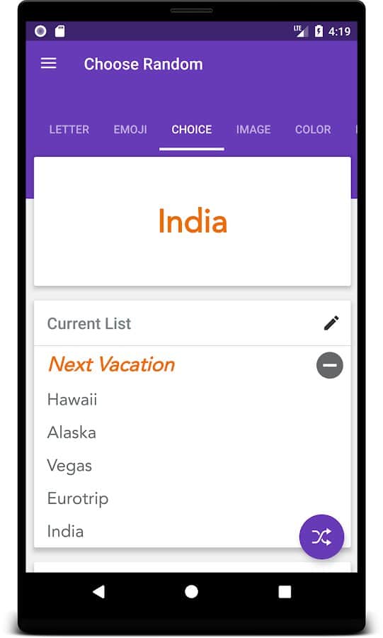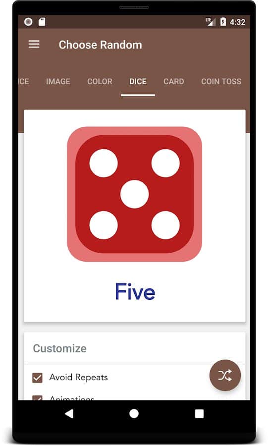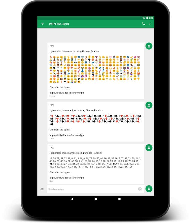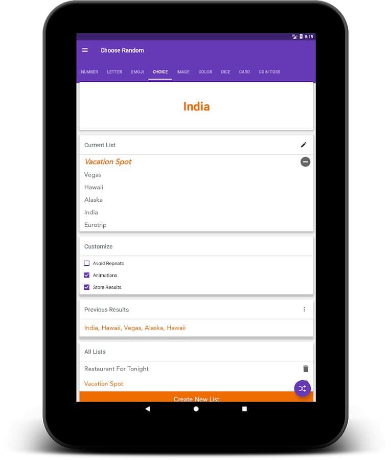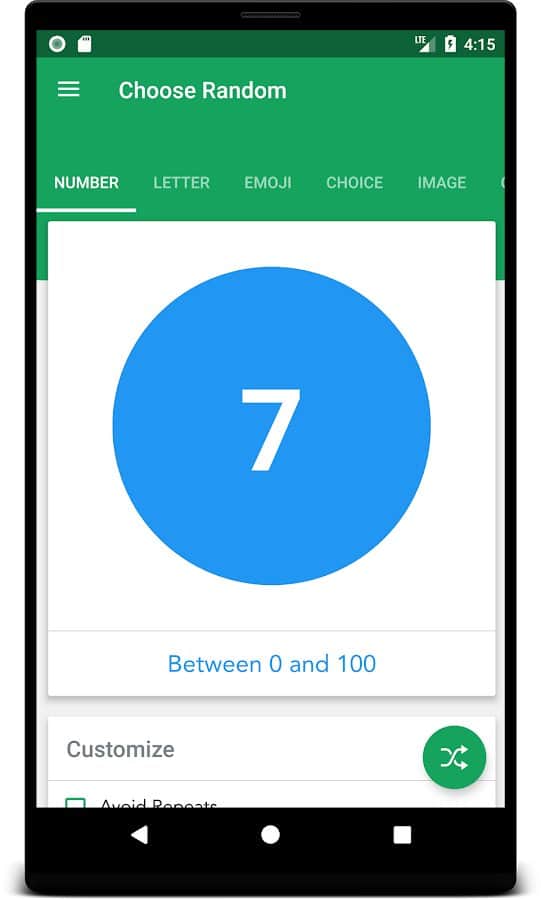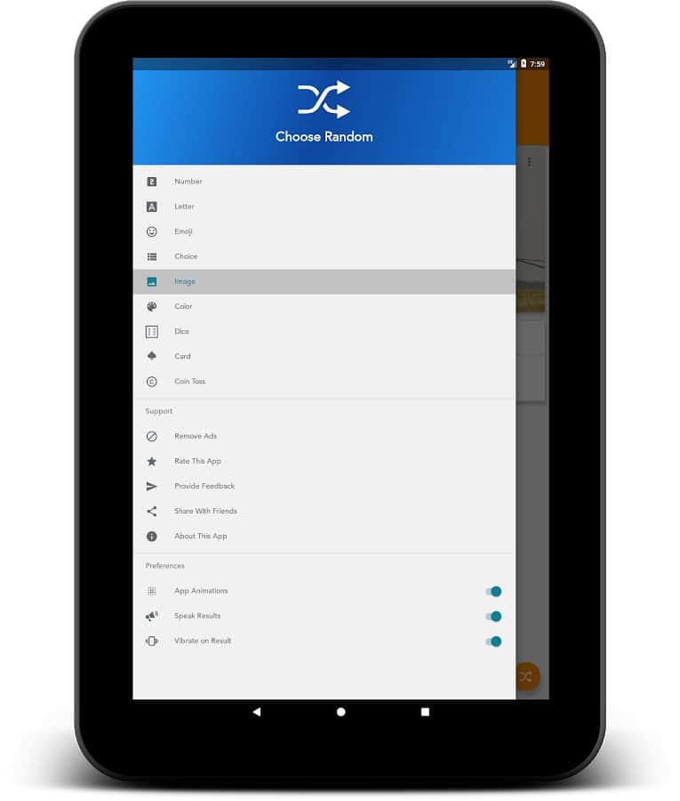 При помощи интуитивно понятного интерфейса программы Choose Random можно быстро и удобно сгенерировать любой набор чисел, букв, изображений, цветов, смайликов, слов из списка, игровых костей или карт из колоды, орла или решку и др. Для каждой указанной категории есть красивая анимация и множество эффектов. А такая функция, как сохранение и импорт данных позволит вам поделиться полученными результатами со своими друзьями и близкими через различные каналы связи, в частности социальные сети. Изображения легко можно установить в качестве обоев на экран смартфона. Приложение имеет отзывчивую техподдержку, быстро реагирующую на возникшие вопросы по использованию.