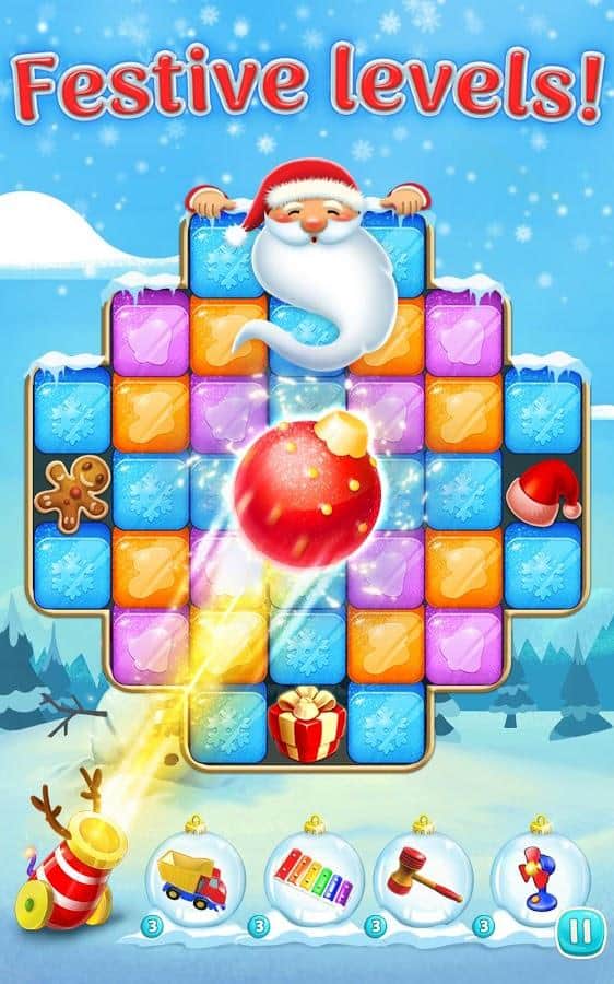 Christmas Blast – интересная игра на андроид, где вы будете искать группы из одинаковых кубиков. Нажимайте на экран своего телефона или планшета в то место где расположены группы кубиков одного цвета и взрывайте их, очищая экран от разноцветных кубиков. Положитесь на свою наблюдательность и логику и проходите уровни этой игры за минимальное количество очков. Применяйте многочисленные усиления и бонусы и получайте награды. Открывайте новые уровни, сложность которых будет постепенно увеличиваться.