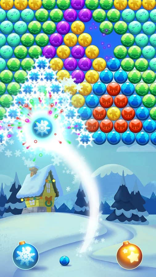 Christmas Cookie - Bubble Pop – помогите забавному пряничному человечку взорвать как можно больше разноцветных пузырей. В этой игре вы погрузитесь в удивительный и неповторимый мир пузырей где вы сможете в полной мере насладиться зимней праздничной атмосферой. Стреляйте разноцветными пузырями в скопление их наверху и взрывайте их. Пытайтесь сформировать группы из трех и более пузырей одного цвета или запустить цепную реакцию взрывов. Старайтесь заполучить по три звезды за каждый пройденный уровень и побить все существующие рекорды в этой игре. Выполняйте все многочисленные задания и пройдите более 1000 уровней, получая сказочные подарки.