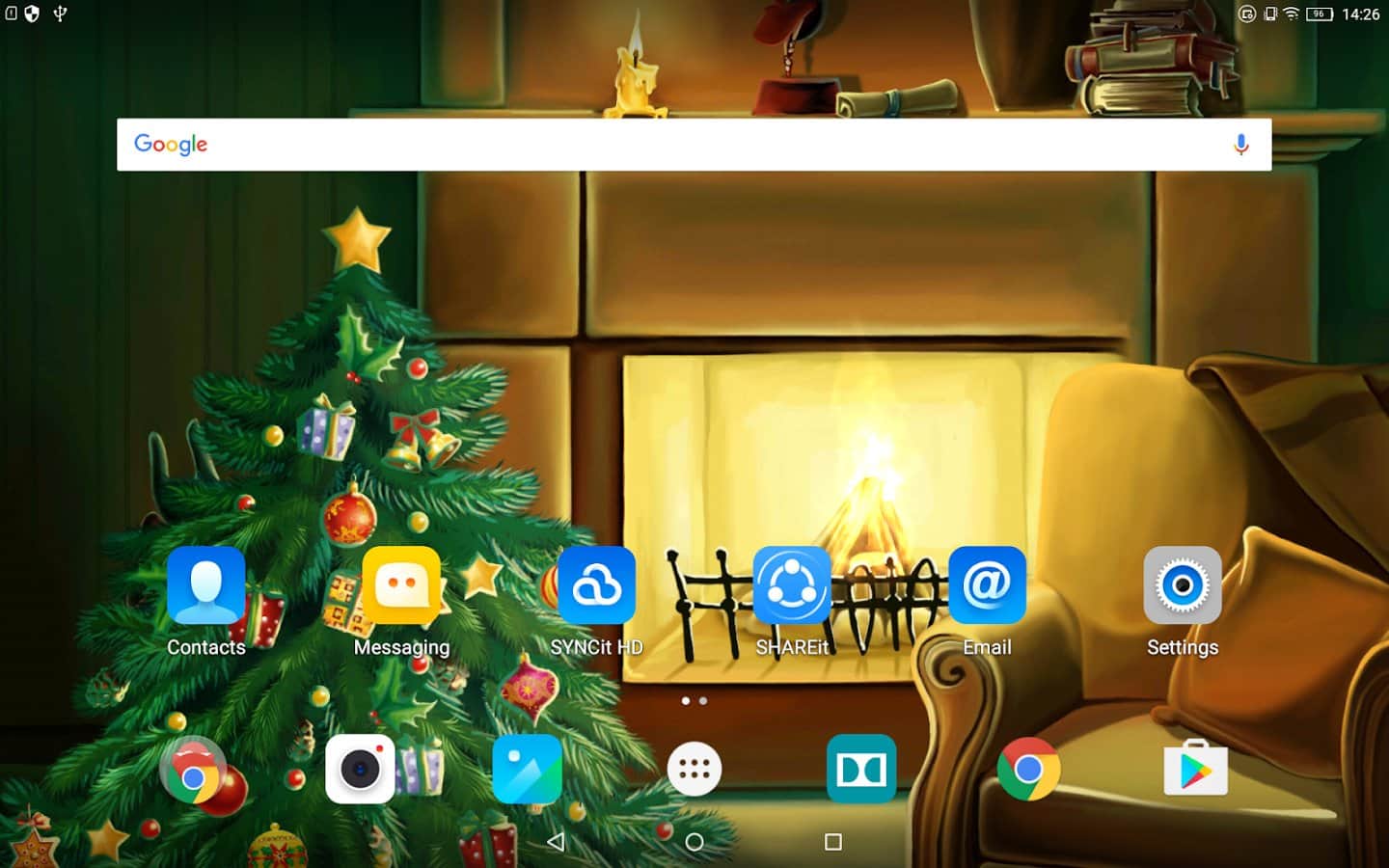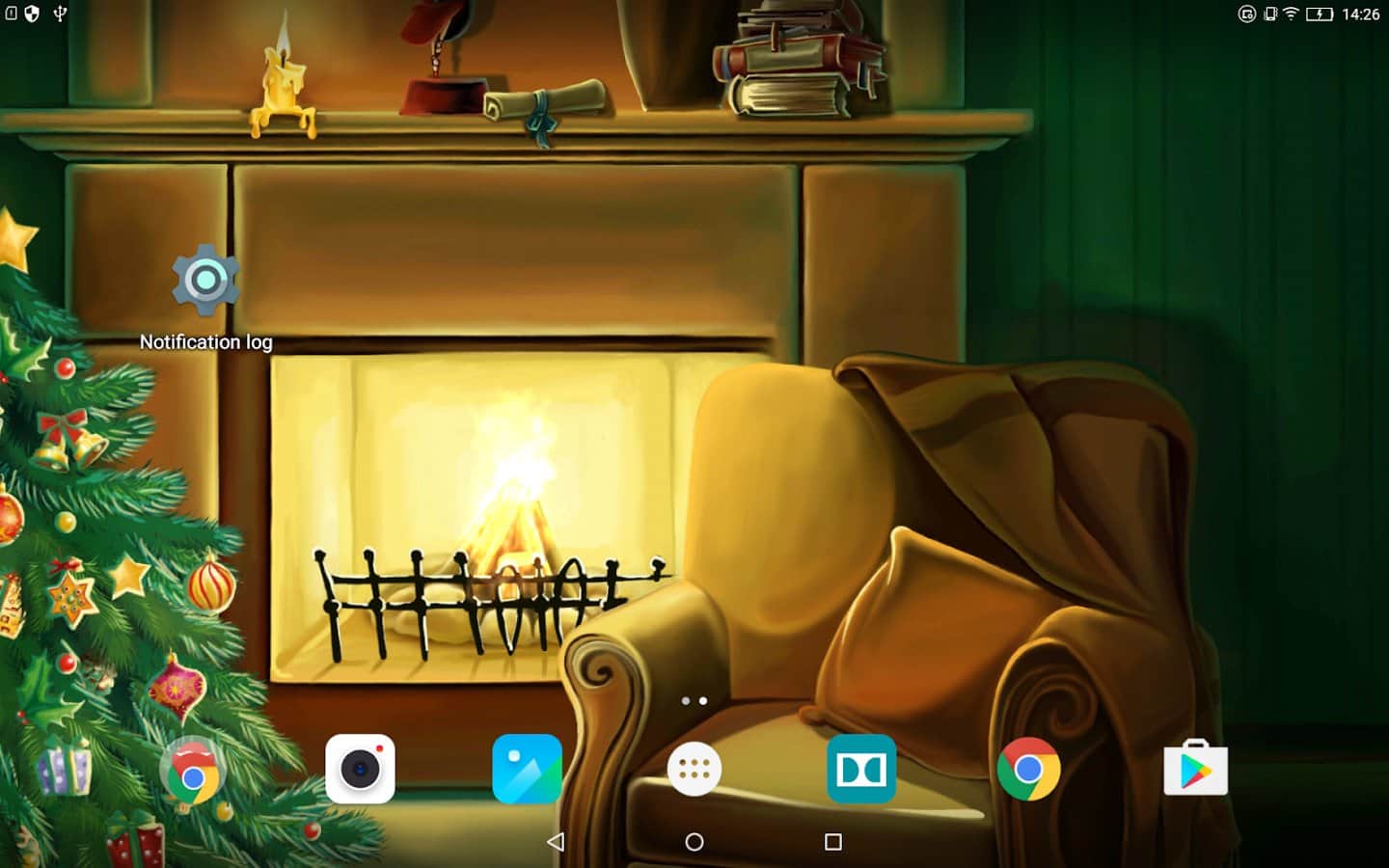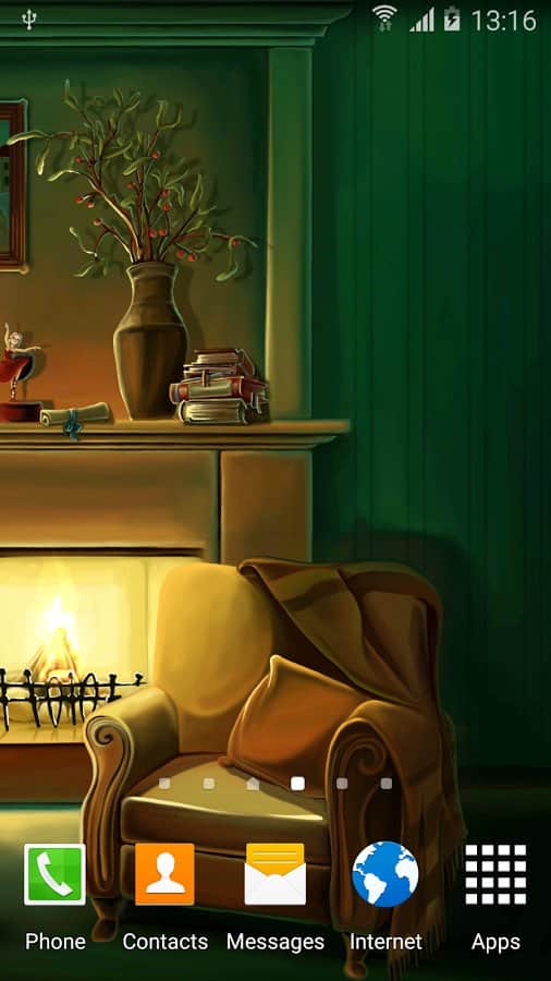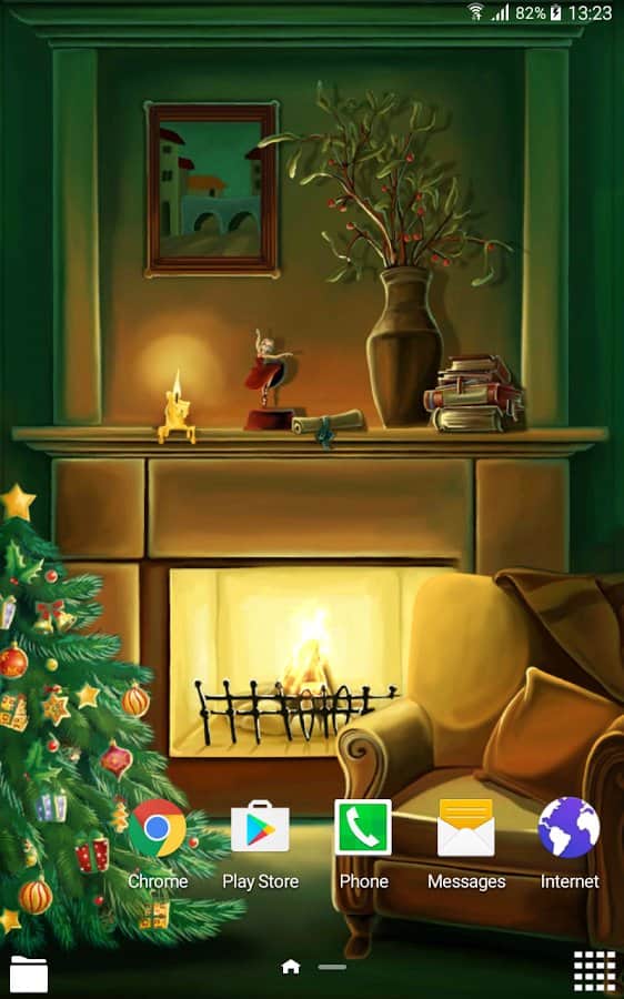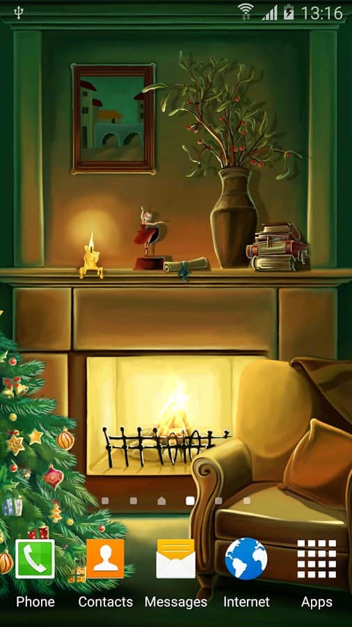Christmas Fireplace Wallpaper – анимированные живые обои на андроид, где вы будете наблюдать волшебство зимних праздников. В этих обоях вы будете наблюдать теплоту и уют от праздничной атмосферы с горящим камином и светящийся елкой. Установите эти живые обои на свой телефон или планшет и погрузитесь в атмосферу праздника, наслаждаясь HD картинкой со светящимися гирляндами и свечами. Когда на улице бушует метель и падает снег, так приятно расположится возле камина и наблюдать как в нем горят и щелкают дрова. Обои порадуют вас плавной анимацией, малым расходом батарее и сказочной атмосферой приближающегося праздника.