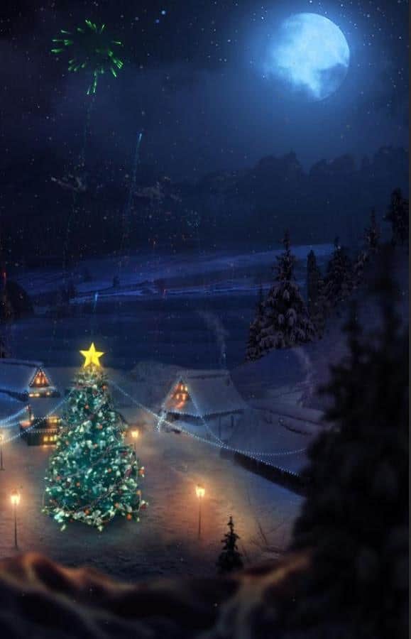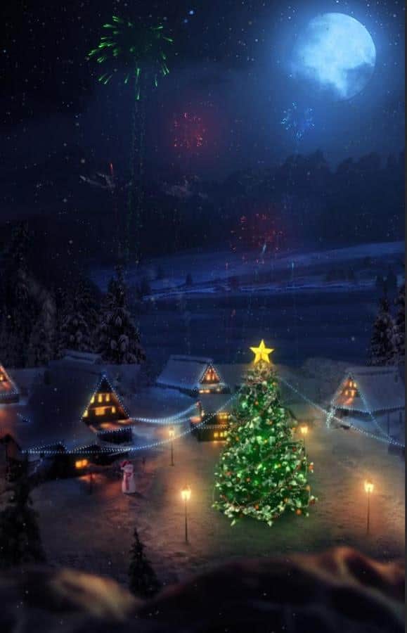 Christmas live wallpaper – отличные живые обои которые перенесут вас в обстановку рождественской ночи. Эти обои порадуют вас сказочной атмосферой предвкушения рождества, в маленькой деревушке посреди которой находиться елка украшенная игрушками и гирляндами. Эти обои порадуют вас анимированными картинками с падающим снегом, мигающими гирляндами и красивыми фейерверками. С помощью настроек сделайте свои обои уникальными, добавив падающего снега, кружащихся облаков и дымков выходящих из труб близлежащих домиков. Установите живые обои в свой телефон или планшет и насладитесь красивыми видами сказочной ночи.