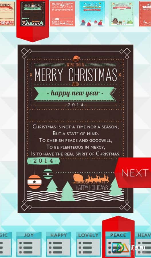 Christmas Mail Cards - замечательное приложение для андроид, с помощью которого вы сможете поздравить друзей с Рождественскими праздниками, создав собственную оригинальную открытку из 100 возможных вариантов.