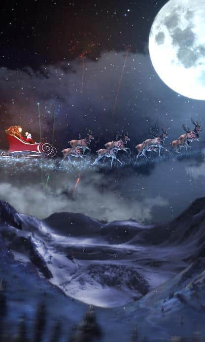 Christmas Santa live wallpaper - анимированные живые обои на ваши андроид телефоны и планшеты. Эти обои перенесут вас в мир, где живет сказка и подарят праздничное настроение приближающегося Нового Года и Рождества. Обои порадуют вас параллакс эффектами с анимированными облаками, оленями, санями и деревьями. Наблюдайте как сани с запряженными в них оленями, везут Санта Клауса в ночи доставлять подарки детям и их родителям. Наслаждайтесь живописными видами и взрывами фейерверков. Эти красивые обои подарят вам прекрасное настроение и будут радовать вас длительное время.