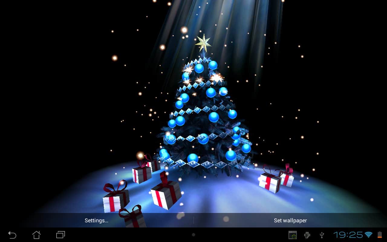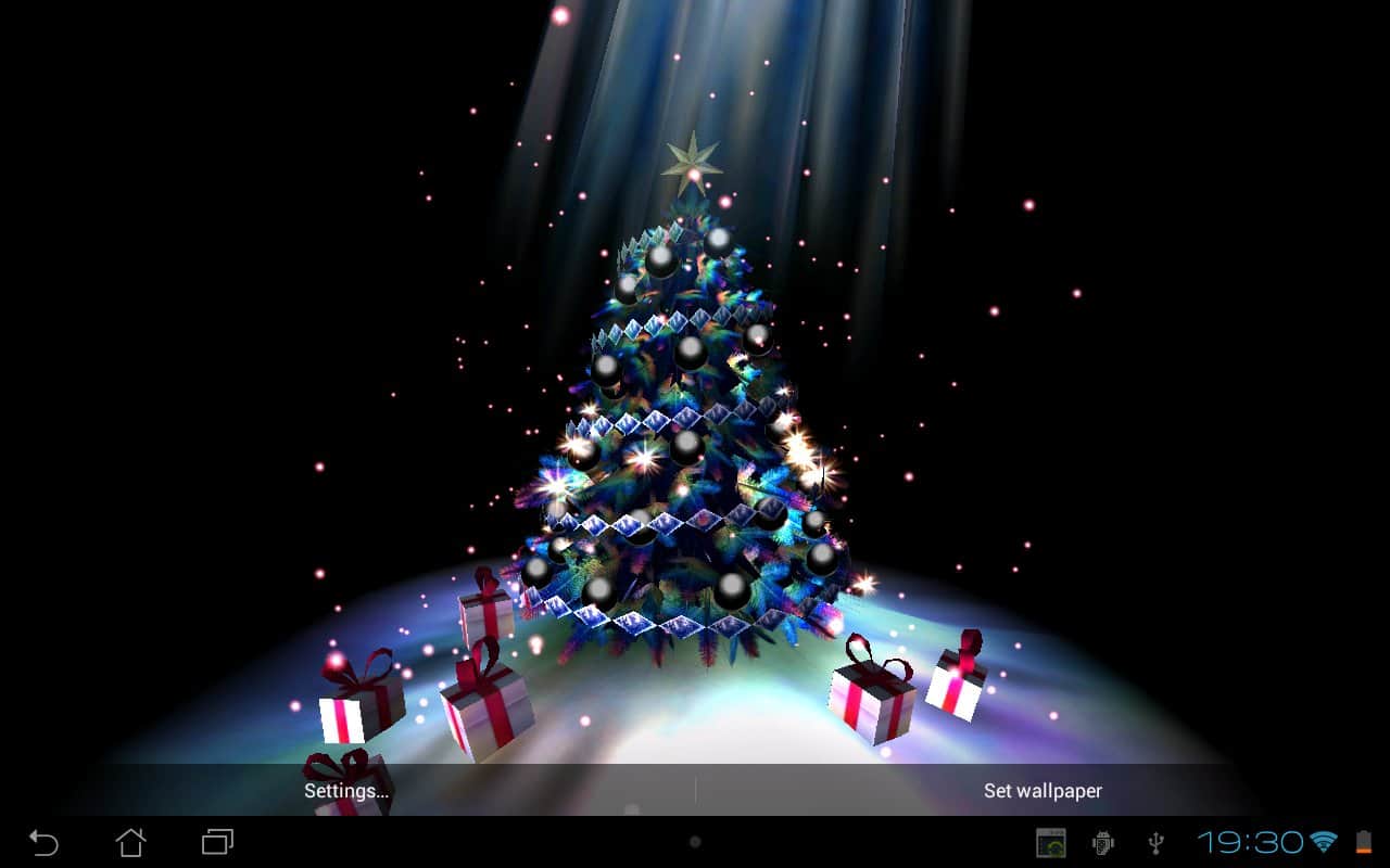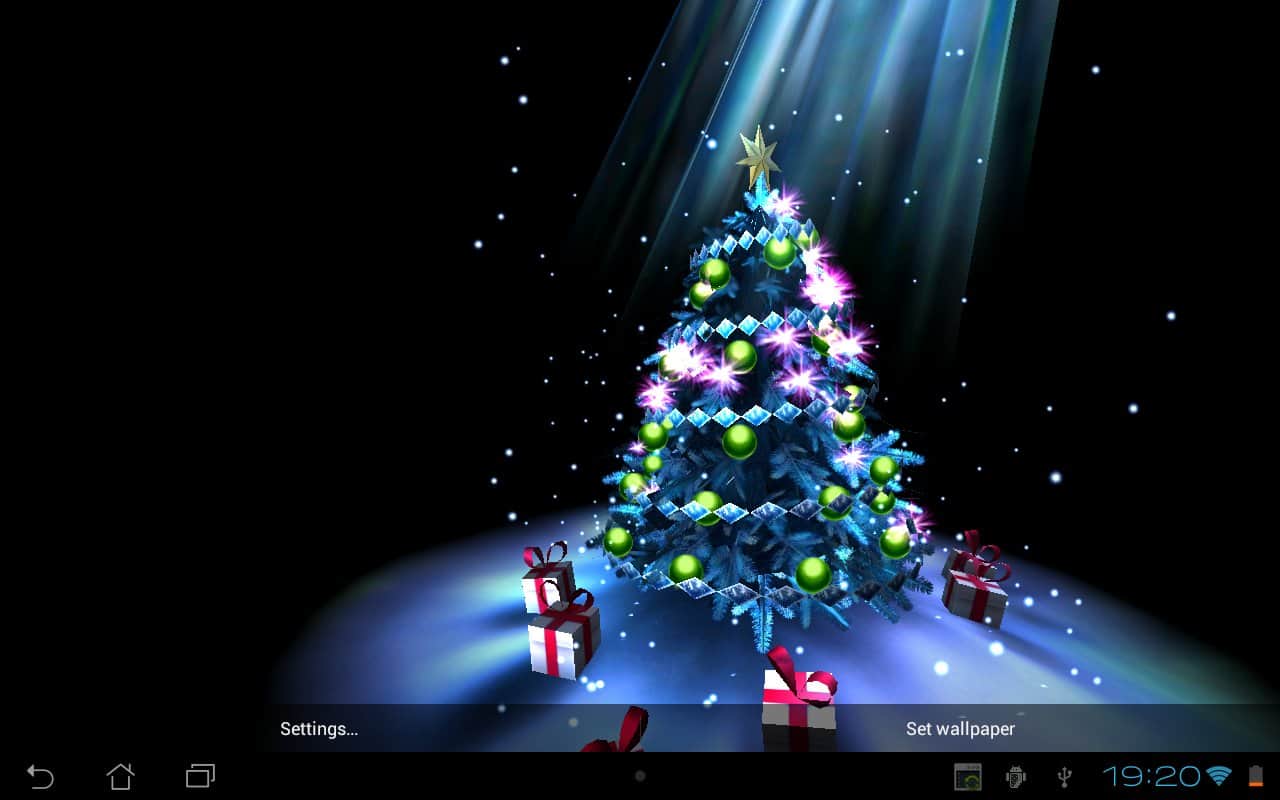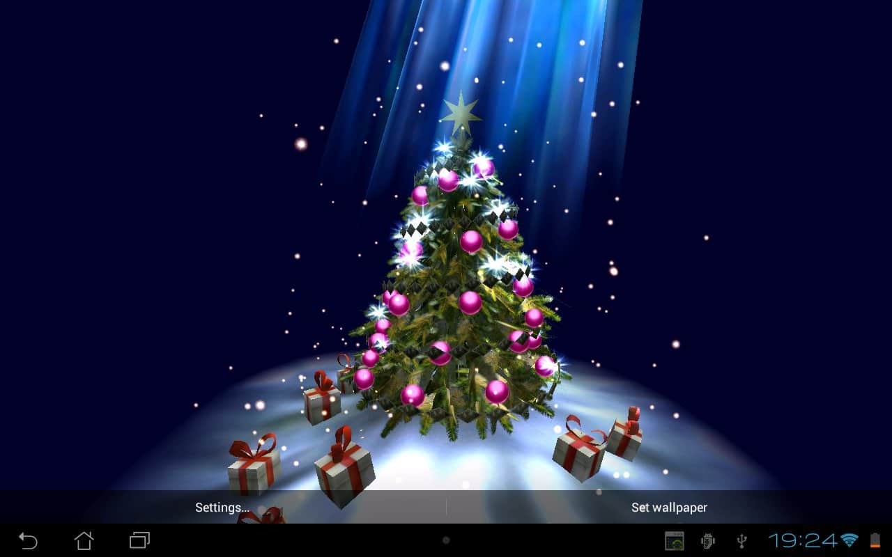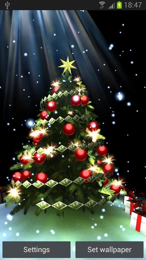 Christmas Tree 3D - очень красивая новогодняя 3D елочка на живых обоях для андроид от лучшего разработчика maxelus.net. Подберите цвет елки и новогодних украшений, а так же снежинок и праздничных огней. Используйте акселерометр для вращения камеры вокруг елки. Отличная графика, которая не оставит никого равнодушным в период Новогодних праздников.