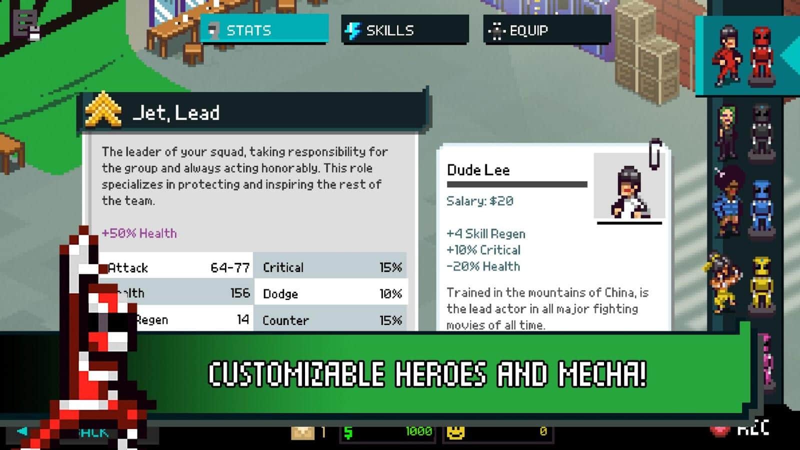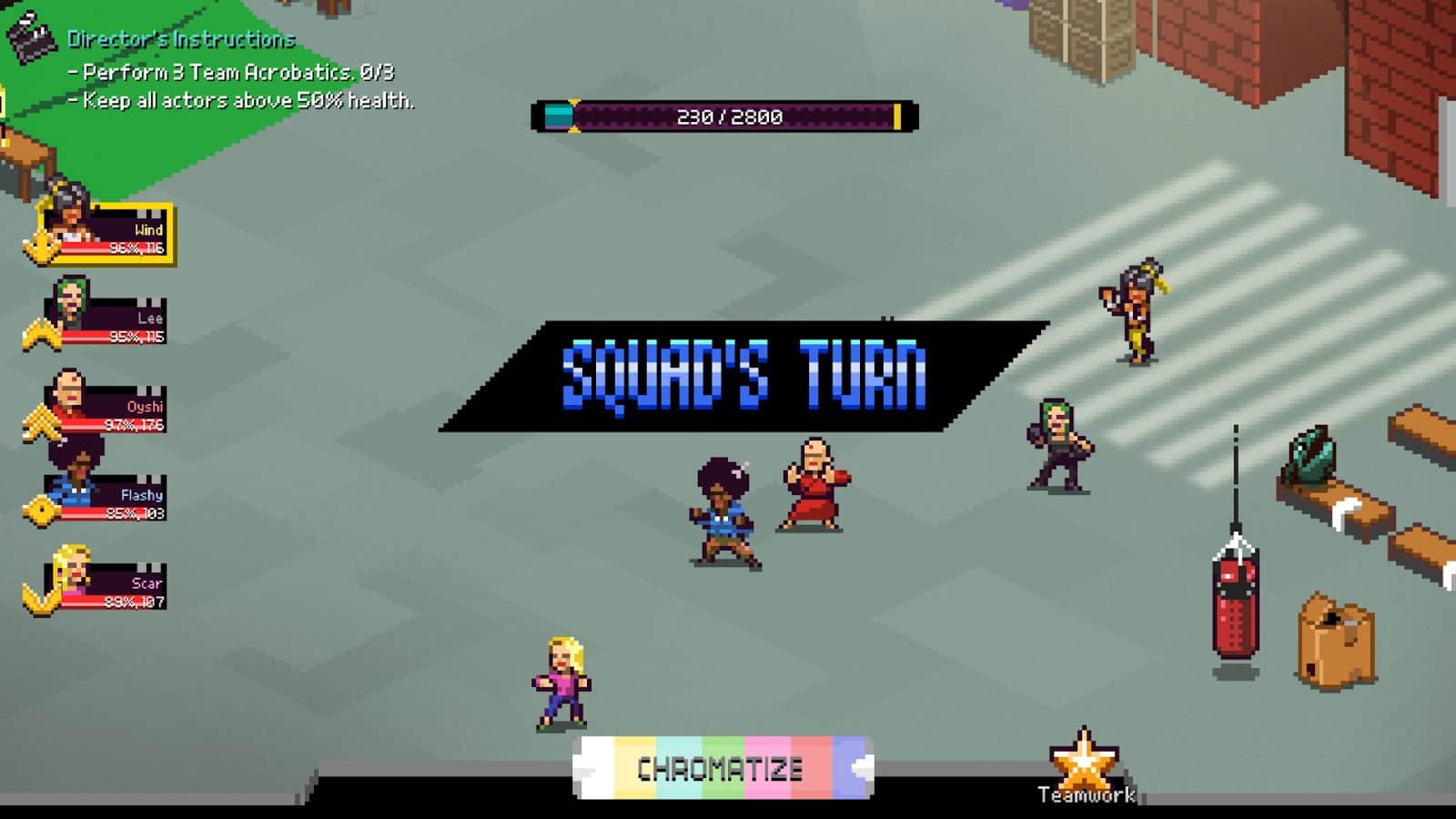 Chroma Squad – тактическое RPG на андроид, где вы будете управлять командой каскадеров. В этой игре вы возьмете под свой контроль пять каскадеров, которые решили бросить свою работу и создать свое теле шоу. Вашей задачей в этой игре будет создать уникальные костюмы и оружие героев из картона и атаковать врагов. Как только камера начинает работать, вам необходимо продемонстрировать свои атаки и комбинировать их в зависимости от уникальных способностей каждого героя. Вступайте в пошаговые бои с врагами и покажите все свои навыки и умения. Проделывайте комбо удары, применяйте различное оружие и создавайте уникальные предметы.