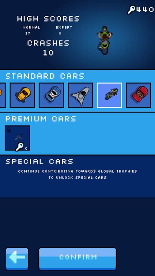 Chrome Death – возьмите под свой контроль отважного гонщика и проведите его по улицам города пытаясь уйти от преследования. В этих гонках с видом сверху вы будете управлять быстрым автомобилем, который едет по улицам ночного города, пытаясь уйти от преследования и избежать столкновения с преградами. Игра порадует вас легким управлением, где вам предстоит вовремя нажимать на экран своего деваса чтобы машина совершила поворот. Избегайте столкновения с другими машинами, ограждениями и стенами домов. Выполняйте разнообразные миссии этой игры и приобретайте новые автомобили. Установите свой рекорд по времени прохождения трассы и соревнуйтесь с друзьями.