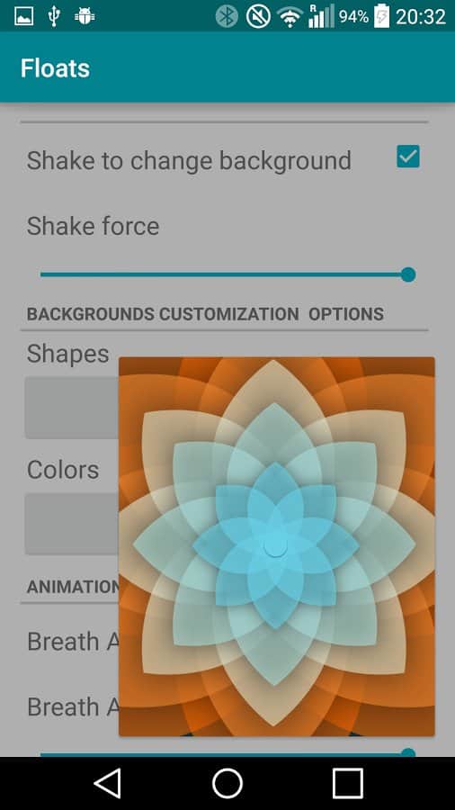 Chrooma Floats LWP – красивые и завораживающие живые обои на ваши андроид телефоны и планшеты. Установив обои в свой телефон, вы получите абстрактную картинку, постоянно меняющуюся и преходящую из одной формы в другую. Анимированные живые обои сочетают в себе огромную палитру цветов, которые перекликаются между собой и создают завораживающее действие. Обои имеют параллакс эффекты и затратят малый процент вашего аккумулятора. Наблюдайте более 20 различных форм на вашем экране и наслаждайтесь красивым расслабляющим действием.