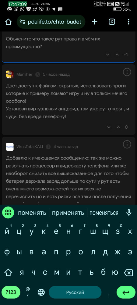 Добавлю к имеющемся сообщению: так же можно разогнать процессор и видеокарту телефона или же наоборот снизить все вышесказанное для того чтобы батарея держала заряд дольше по сути у рут есть очень много возможностей так их всех не перечислить но и есть риски все таки после получения рут твой телефон становиться более уязвимым ну как то так спасибо за прочтение :)
