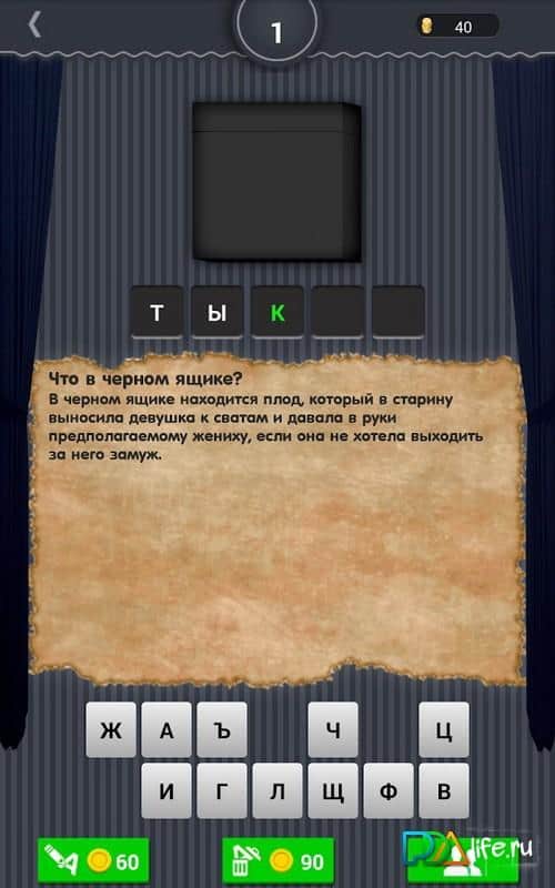 Что в черном ящике? - игра-головоломка, которая порадует вас интересными вопросами о том, что скрыто в черном ящике. В игре более 150 вопросов, прочитав которые вам необходимо разгадать ответ. Если вопрос кажется, вам слишком сложным то на помощь придут подсказки, с помощью которых вы сможет удалить ненужную букву, вставить правильную букву или попросить помощь друзей. Интересно проводите свое свободное время, разгадывая разные по сложности загадки, и правильно отгадывайте ответ, что скрыто в черном ящике.