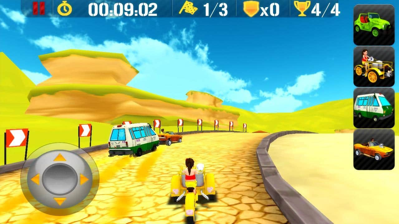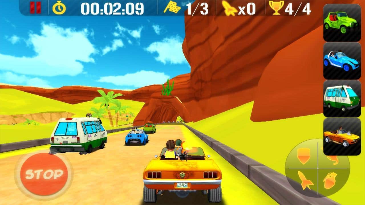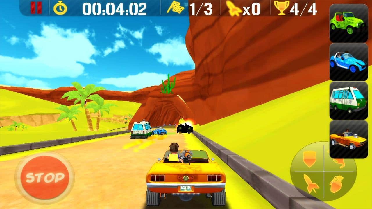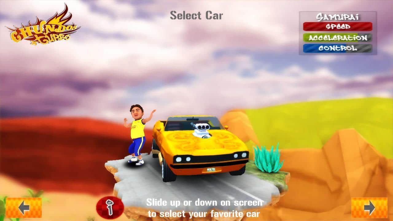 Chundos + turbo - это гонки по Мексиканским дорогам! Задача любых гонок - приехать к финишу первым. Вы можете ездить в одиночке и улучшать свой результат, можете сразиться с соперниками в режиме Кубка, а также выступить в настоящем батле! Кроме того, можно регулировать уровень сложности! Выбирайте один из 6 авто и 6 персонажей. Ну и управление тоже имеет 3 варианта - акселерометр, джойстик и тачпад!