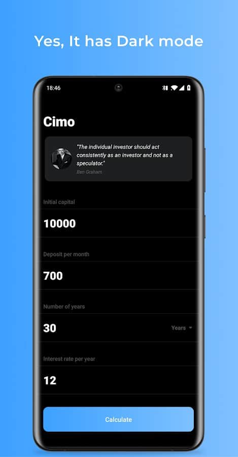 Приложение Cimo пригодится тем, кто часто высчитывает сложные проценты для различных целей.