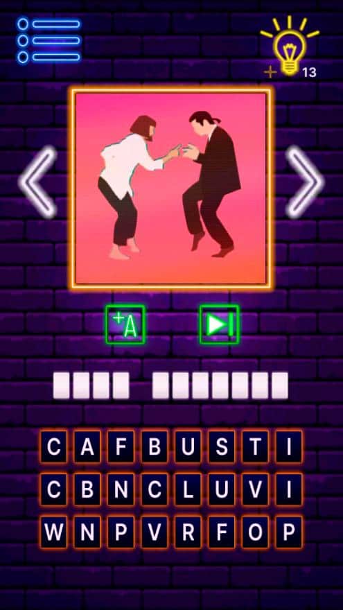 Cinemania Quiz Cinemania QuizЭта интересная игра отлично подойдет киноманам, которые обожают смотреть фильмы на различные тематики! Попробуйте испытать удачу, интуицию или применить собственные знания в отгадывании фильмов по определенным картинкам. На каждом уровне будет изображено некоторое действие, персонажи, пейзажи, необычные особенности или часть сюжета, но не всегда каждый сможет быстро догадаться что это. Упрощает задачу также количество букв, дополнительные подсказки (рекомендовано их не использовать) и пропуск самого уровня.