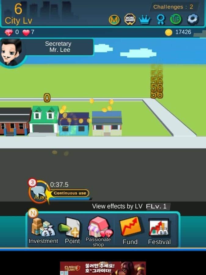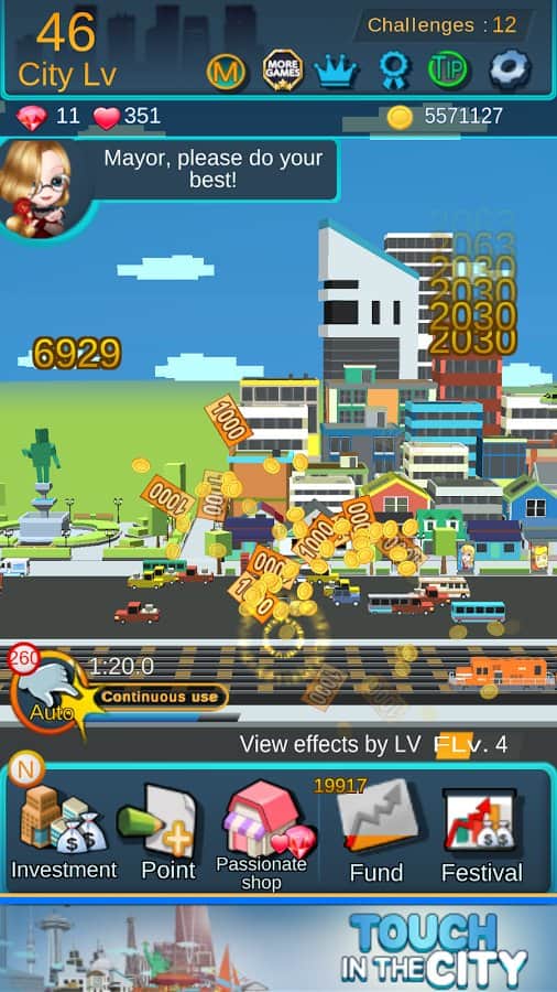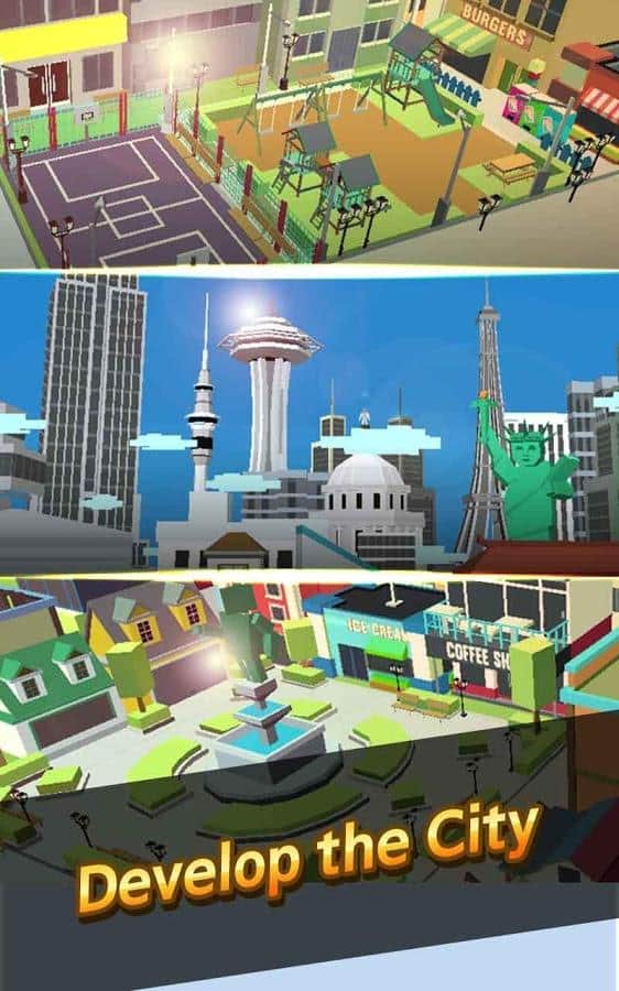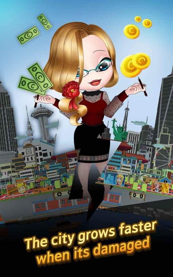City Growing-Touch in the City – отличный кликер на андроид, где вы будете развивать небольшой город и превращать его в мегаполис. В этой игре вы станете мэром города и будете строить новые здания, покупать вертолеты, корабли и машины и приглашать в свой город новых жителей. Станьте лучшим мэром для маленького города и полностью погрузитесь в процесс благоустройства и обогащения своего города. Применяйте в игре скорость своих пальцев и нажимайте как можно чаще на дома и здания. Зарабатывайте как можно больше монет и стройте новые здания и дороги. Наслаждайтесь увлекательным игровым процессом, многочисленными строениями и улучшениями для города.