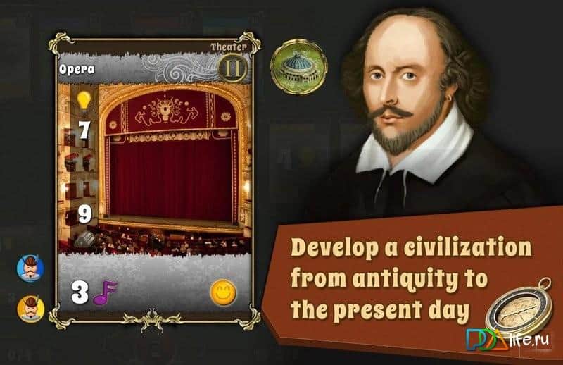 Цивилизация: Гонка Народов / Civilization: Race of Nations - В игре «Цивилизация: Гонка Наций» вы поднимаете древнюю цивилизацию, чтобы сделать её более передовой. Вы должны построить новые здания: дома, фермы, библиотеки, лаборатории. Также мы должны нанять и содержать новых рабочих, исследовать новые технологии. Как хороший господин, вы должны предоставлять им и развлечения. Также не забудьте о жизненно важном: о своём войске. Там тоже должно быть тоже всё оборудовано: так как выигрывая войну вы получите славу среди эпох.