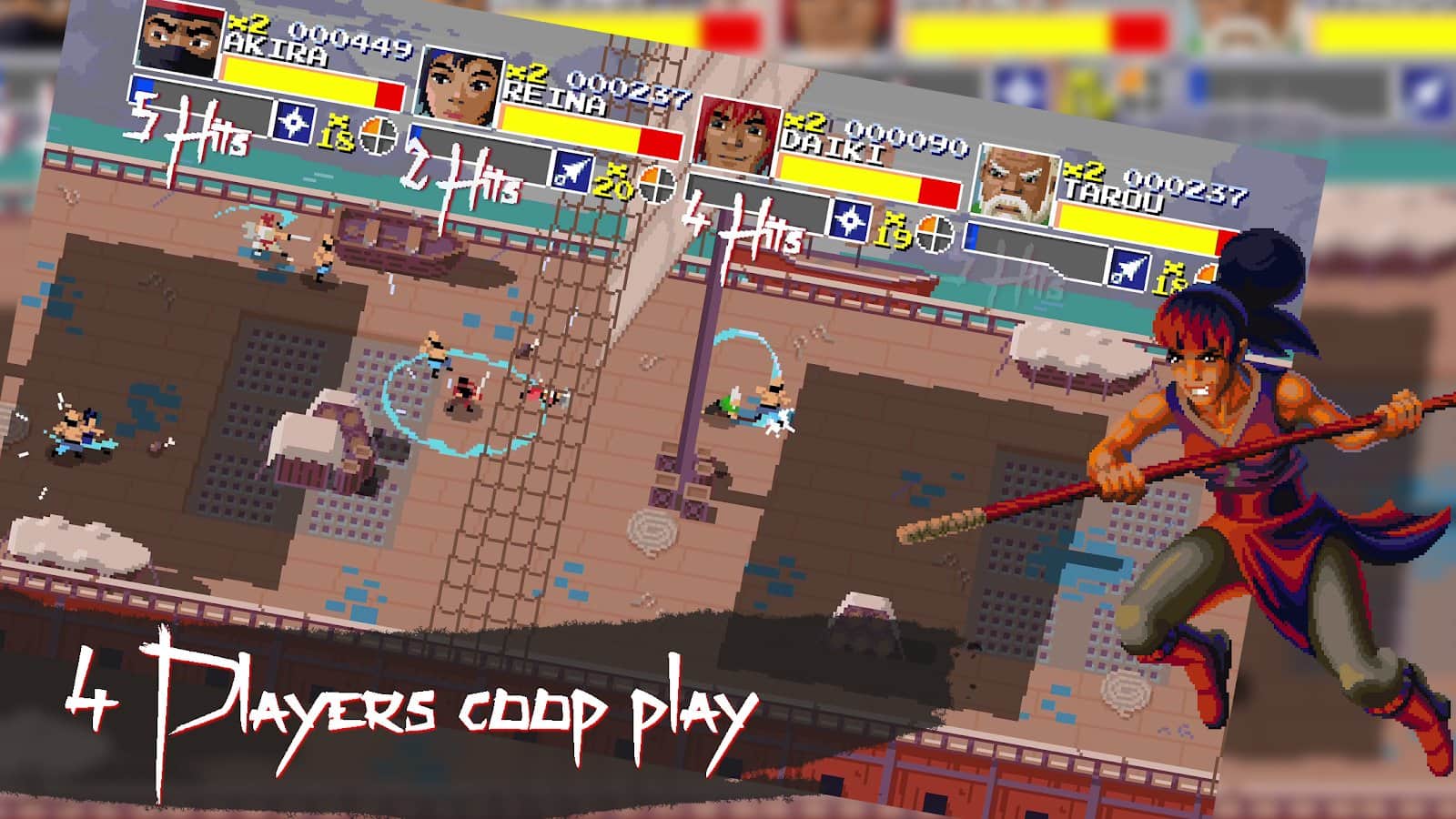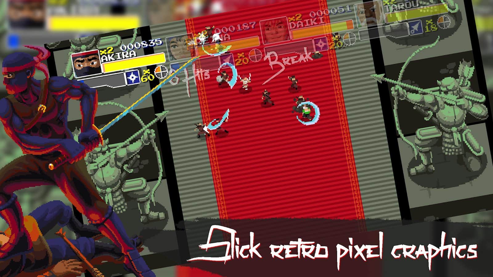 Самый обычный но очень добротный бит-м-ап. Поиграл только за одного персонажа, который Акира, у него всего три удара, тобишь тяжёлый, лёгкий и бросок сюрикена. Также персонаж умеет спринтить, прыгать, перекатываться и блокировать. Но самое главное, что тут можно делать комбо-удары! Можно подбросить нескольких врагов в воздух, и там же их нашинковать, можно просто парой умелых махов нарезать целую толпу, конечно не DMC, но тоже неплохо. У всех персонажей можно заметить разное оружие, значит разный стиль игры. Но это не точно, ибо поиграл я всего за одного. Весь игровой процесс состоит в том, чтоб просто нарубить кучку врагов, равномерно размазанных по уровню. Самих врагов тоже несколько видов, тут тебе и мечники, и копейщики, и лучники, и всадники, и дальше в этом духе. Битвы с боссами тоже сделаны неплохо. В общем довольно бодренький и более-менее качественный слешер. Я точно не знаю, может это порт, ибо прям веет атмосферой стареньких 8-битных игрулек, типа первого золотого топора, первых улиц ярости, и тому подобных игр, но только быстрее. (Да, я знаю что и первый и второй пример это уже 16-битные игры, но атмосфера прям такая же ламповая, как при запуске выше названых проектов) моё мнение 5/5, ибо мне прям понравилось. Также есть весьма неплохой кооператив на четырёх игроков, но я его не пробовал, потому сказать ничего не могу.