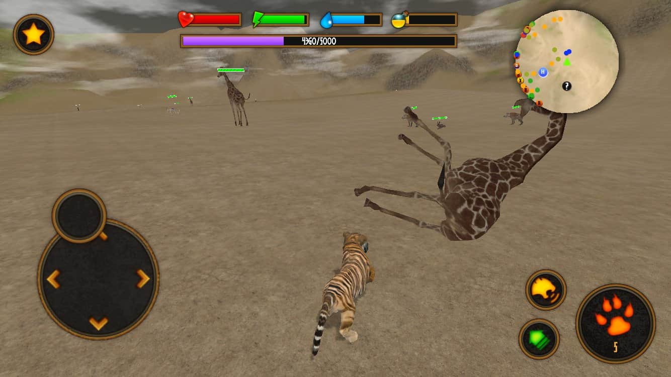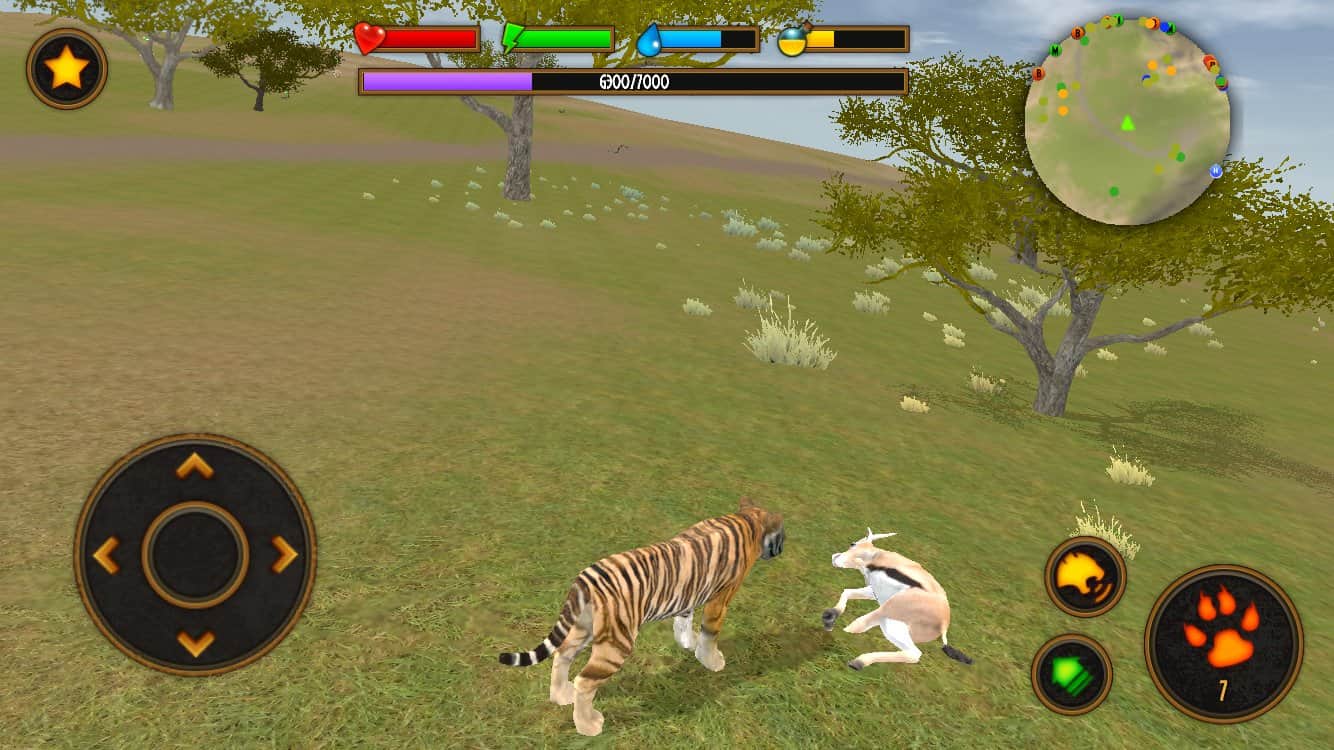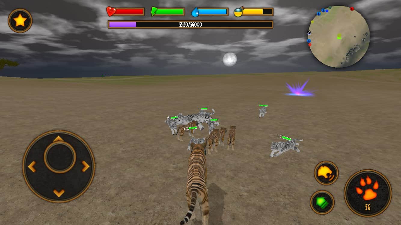 Clan of Tigers – симулятор на андроид, где вам предстоит управлять отважным тигром. В этой игре вы будете играть за тигра, которому выпала опасная миссия вернуть свои территории и завладеть всей властью в саванне. Исследуйте бескрайние территории игры и сражайтесь с врагами, а также ведите охоту на мелких животных и зверей. Прячьтесь в засаде и в нужный момент нападайте на свою жертву, нанося ей смертельные удары клыками и когтями. Также изучайте способности своего тигра и развивайте их, они помогут вам сразиться с мощными боссами такими как: леопард, крокодил, лев и слон. Ищите своих союзников и создавайте с ними целые кланы, воспитывая потомство.