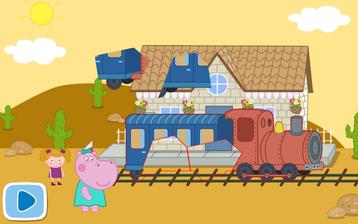 Clara Puzzles – анимированные пазлы на андроид, созданные специально для детей дошкольного возраста. В этой игре вы будете помогать Кларе и Гиппо Пепе добраться домой, перемещаясь по различным картам. Помогайте этой дружной компании собирать различные транспортные средства, собирая из них пазлы, чтобы преодолеть как можно большее расстояние и вернуться домой. Игра разделена на несколько этапов, где ваш ребенок будет собирать детали пазла воедино и помогать путешественникам летать на самолете, корабле, паровозе и передвигаться на автомобиле. Также не забывайте что ваш героям понадобиться отдых, соберите для них палатку и разожгите костер. Игра порадует детей и их родителей красивой анимацией, приятным звуковым сопровождением и простым управлением.