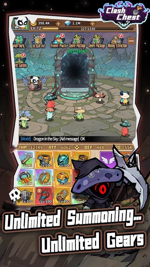 Clash Chest - Проснувшись, вы обнаруживаете себя в образе воина-панды, готового отправиться в таинственный и опасный лес, вооруженного мощью и хитростью. Смело шагая вперед, вы решаете сохранить спокойствие этого загадочного места и начать свое незабываемое путешествие. В глубинах этого леса каждая ваша раскопка может стать началом нового волнующего приключения. Когда перед вами появляется портал телепортации, ваш пульс учащается, потому что вы никогда не знаете, что может ждать вас на другой стороне. Дракон-демон, обладающий подавляющей мощью, кажется непобедимым. Но вы не одиноки в этой борьбе. Создайте непобедимую силу вместе со своими товарищами и объединитесь с игроками со всего мира, чтобы противостоять этому демону-дракону.