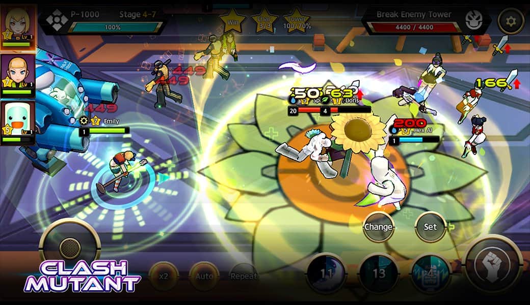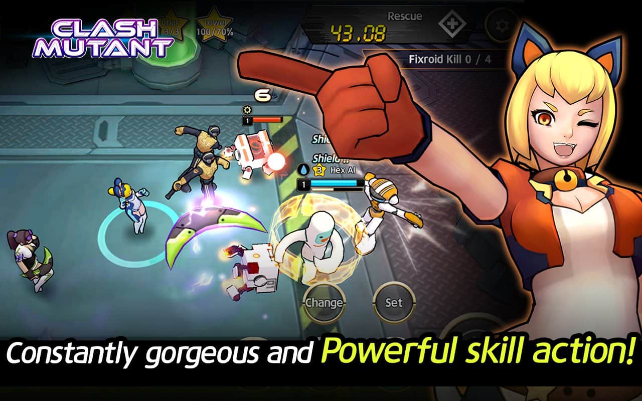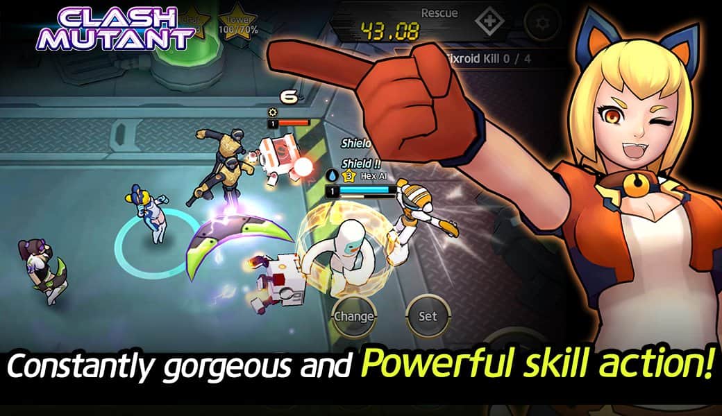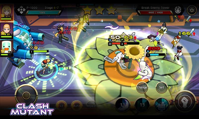 Clash Mutant – ролевая игра на андроид, где вы станете выступать в роли опытного командира. Вашей главной задачей в этой игре будет собрать свою непобедимую команду героев и сразиться с сильными противниками. Путешествуйте по огромной галактике, изучая различные планеты. На каждой планете вас будут поджидать опасные монстры и сильные боссы. Соберите свою команду так чтобы каждый герой дополнял другого и тем самым увеличивал шансы на победу. Бросайте вызов реальным игрокам со всего мира и сражайтесь с ними на арене. В игре вы найдете несколько режимов игры, множество персонажей и увлекательных миссий.