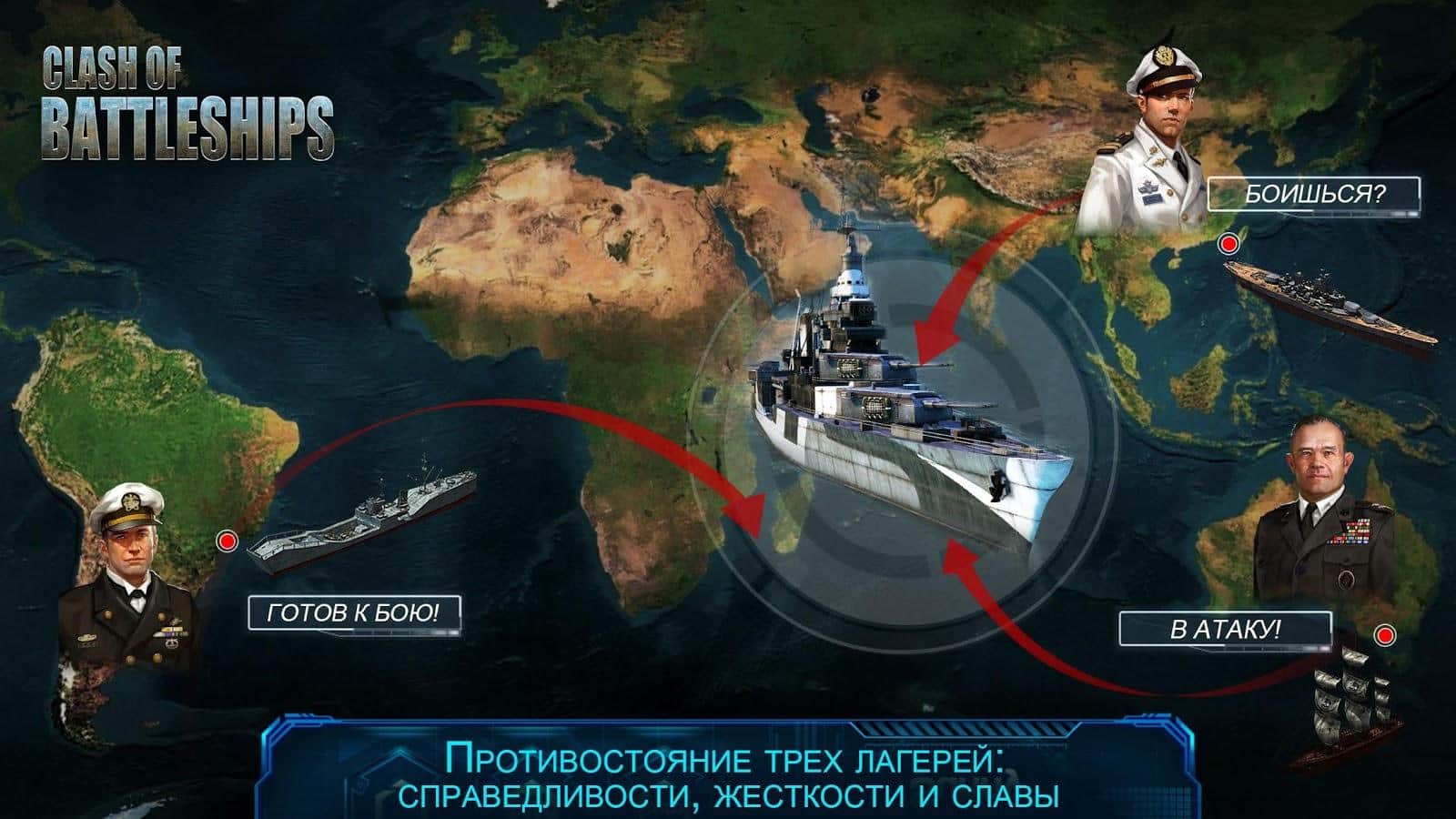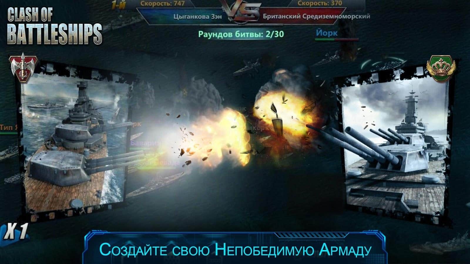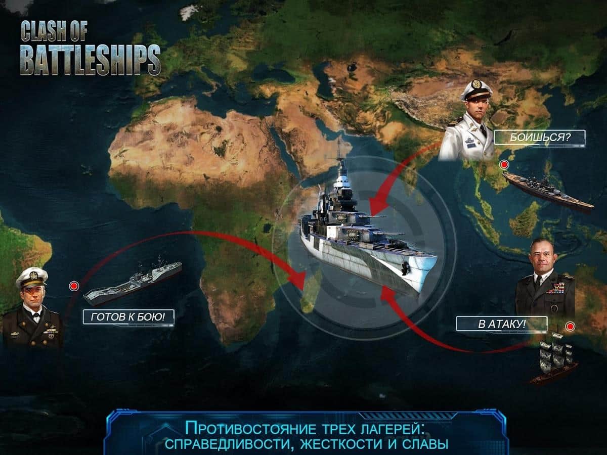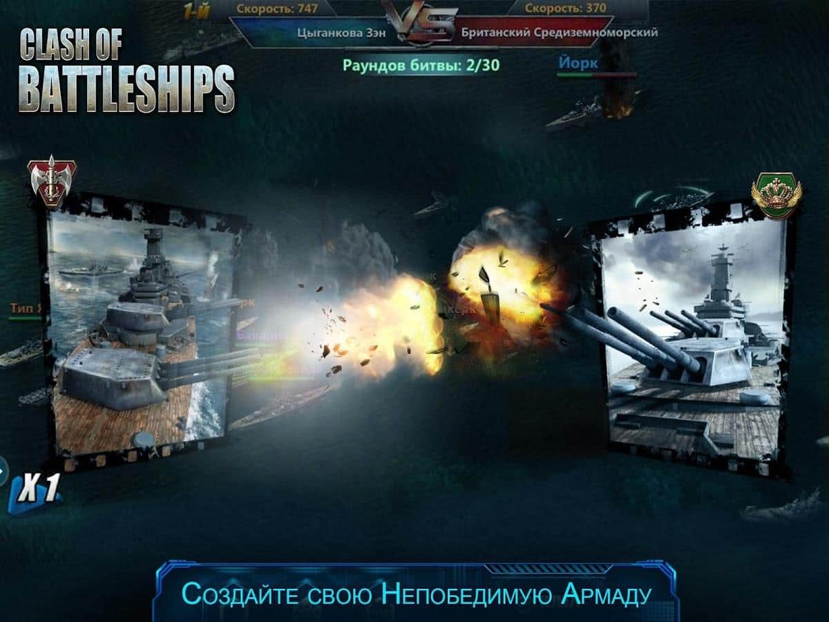 Clash of Battleships - Представляем вам интерактивную военно-морскую стратегию с довольно простым управлением. В игре прекрасно воспроизведены внешний вид военных кораблей. Окунитесь в настоящие морские бои наполнены запахов выстрелов с огромных пушек и привкусом морской соли на губах!