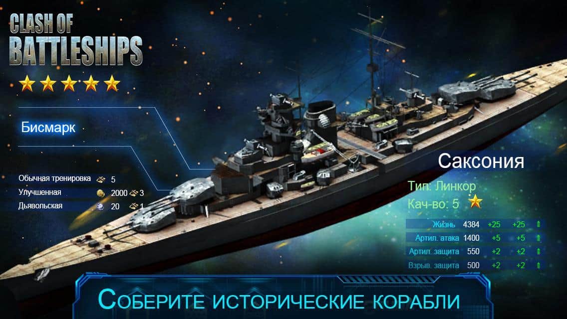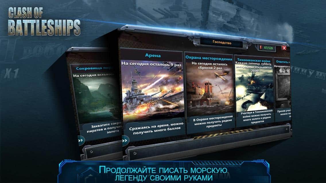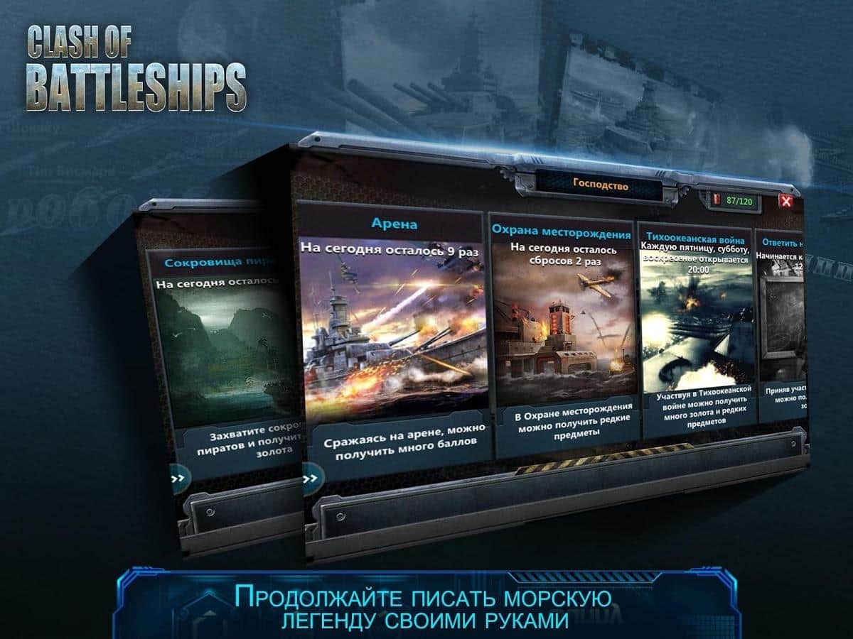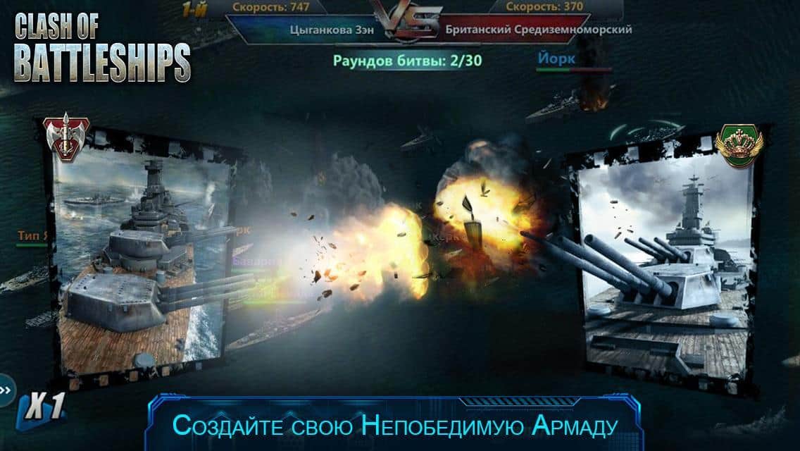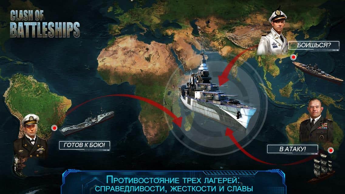 Clash of Battleships - Представляем вам интерактивную военно-морскую стратегию с довольно простым управлением. В игре прекрасно воспроизведены внешний вид военных кораблей. Окунитесь в настоящие морские бои наполнены запахов выстрелов с огромных пушек и привкусом морской соли на губах!