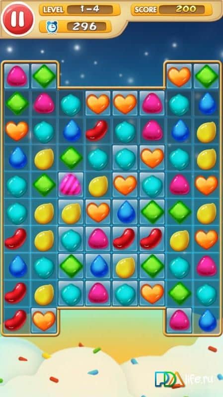 Clash of Candy – игра из жанра три в ряд на андроид, где вам необходимо собирать одинаковые фигурки в ряды. Соединяйте как можно больше одинаковых объектов в ряд и взрывайте их, освобождая место для других. Пройдите более 100 уровней, каждый из которых порадует вас своими уникальными полями и неповторимыми миссиями. Собирайте спрятанные сокровища и прилагайте немало усилий, чтобы заработать по три звезды на каждом уровне. Соединяйте редкие по цвету фасоли в ряды и проделывайте комбо удары, наблюдая неповторимые каскадные взрывы. Играйте и наслаждайтесь яркими уровнями и разнообразными объектами.