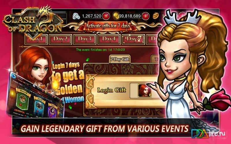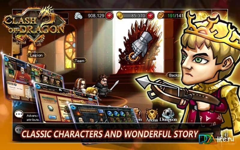 Clash of Dragon – RPG на андроид, где вам предстоит защищать свое королевство от вторжения сил зла и тьмы. Соберите свою команду отважных героев и вступайте в эпические схватки с могущественными лордами и врагами за власть в королевстве. Путешествуйте по всему королевству и открывайте для себя новых героев с разнообразными способностями. Выполняйте различные миссии и задания, сражаясь с монстрами и сильными боссами. Воспользуйтесь способностями каждого героя в многочисленных боях и схватках, а также улучшайте своих воинов, наделяя их дополнительными свойствами и умениями.