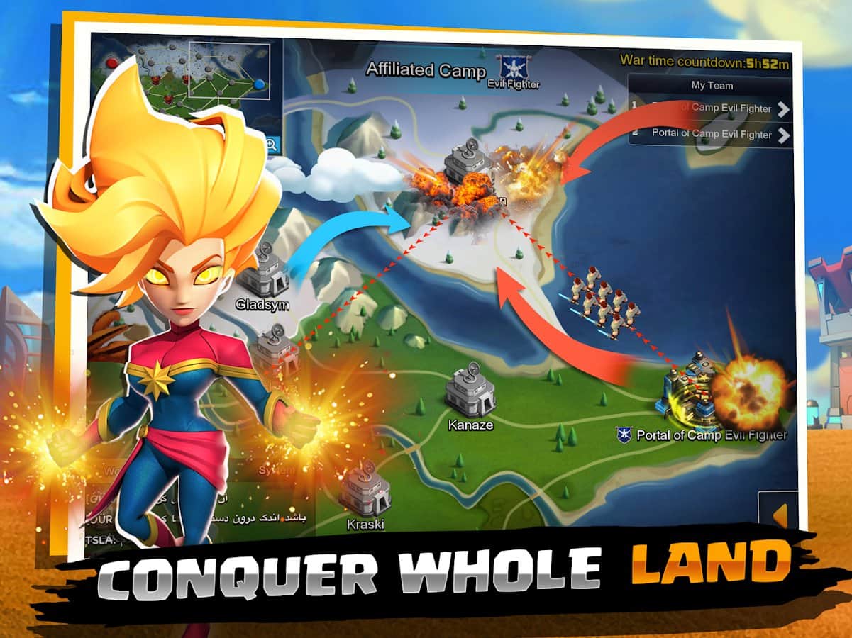 lash of Kingdoms: Heroes War глобальная военная игра MMORTS, которая сочетает в себе защиту башни замка, карту героя и войну королевств. В этом хаотическом мире научной фантастики, будучи командиром, игрок должен построить базу, чтобы противостоять атакам зомби и вражеским набегам, а также набирать героев для формирования команд и работы с союзниками для создания сильнейшей империи. Призывайте легендарных героев, сформируйте свою команду, пробудите божественные навыки отражайте атаками беспощадных зомби.