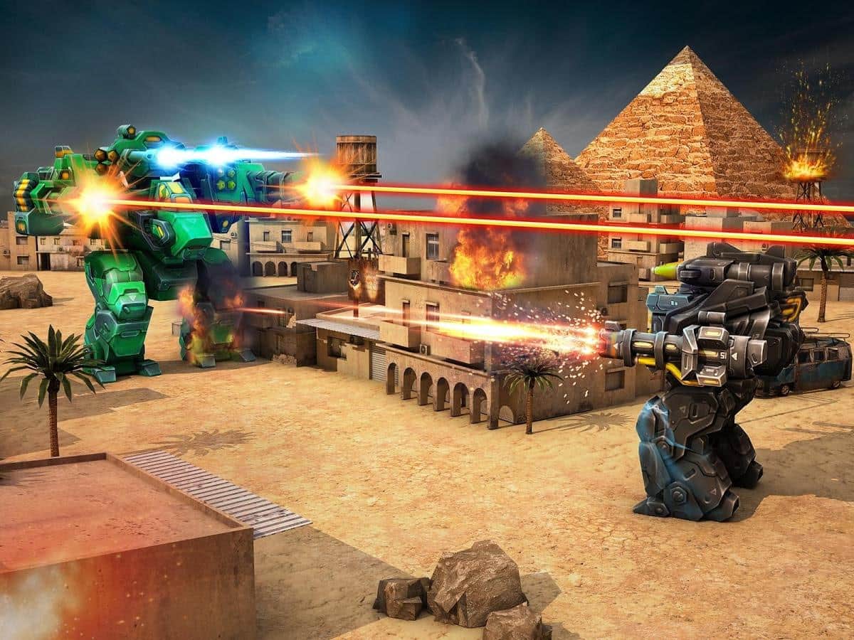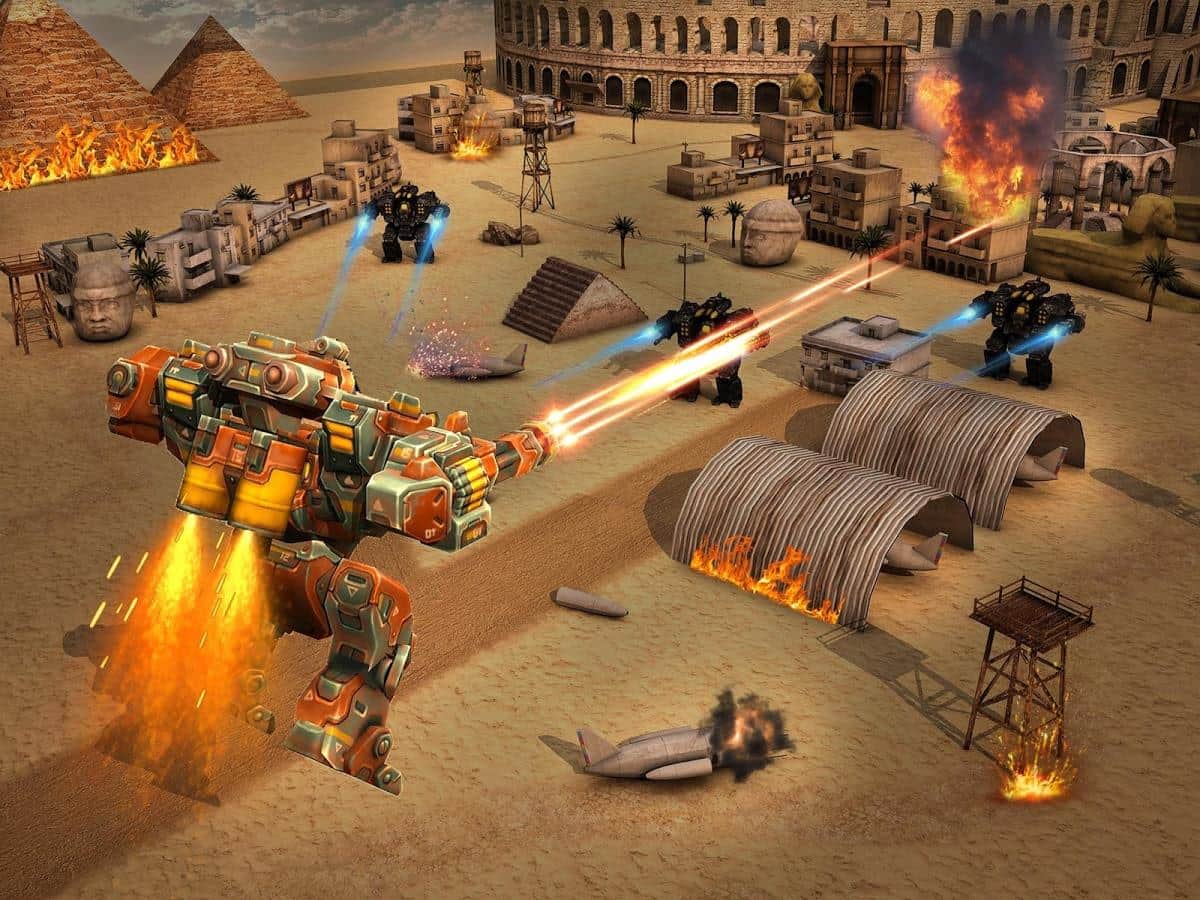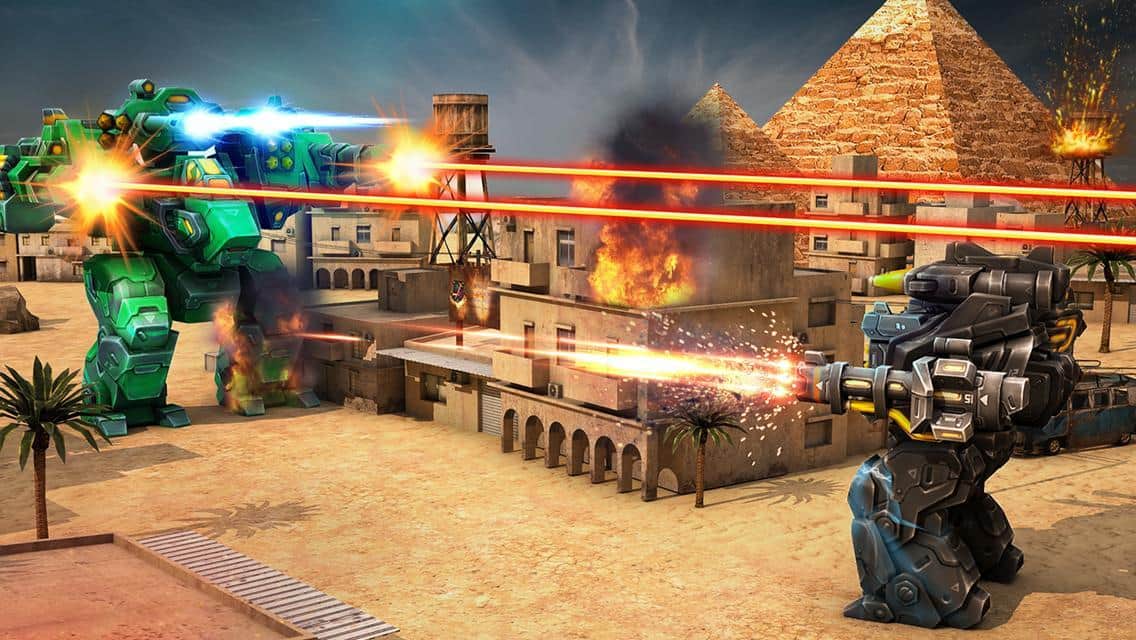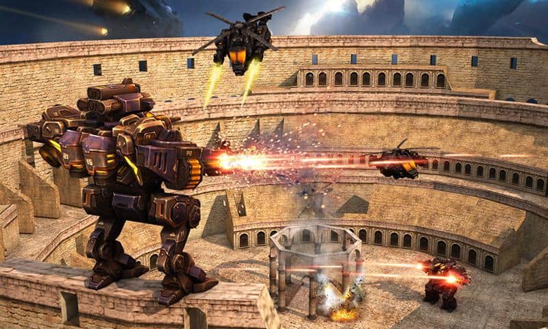 Clash of Mech Robots – игра на андроид, где вы с помощью боевых роботов должны остановить вторжение инопланетян. Эта игра перенесет вас в недалекое будущее, где для защиты своей планеты люди создали боевых роботов, которыми могут управлять. Возьмите под свой контроль одного из роботов и защитите свою землю от захвата. Перемещайте робота по различным локациям игры и ведите непрерывный огонь по врагам из пушек и ракетных установок. Выполняйте все миссии предложенные игрой и приобретайте новых роботов, которые будут обладать уникальными навыками и оружием. Улучшайте технические характеристики роботов в ангаре и усовершенствуйте свои боевые машины.