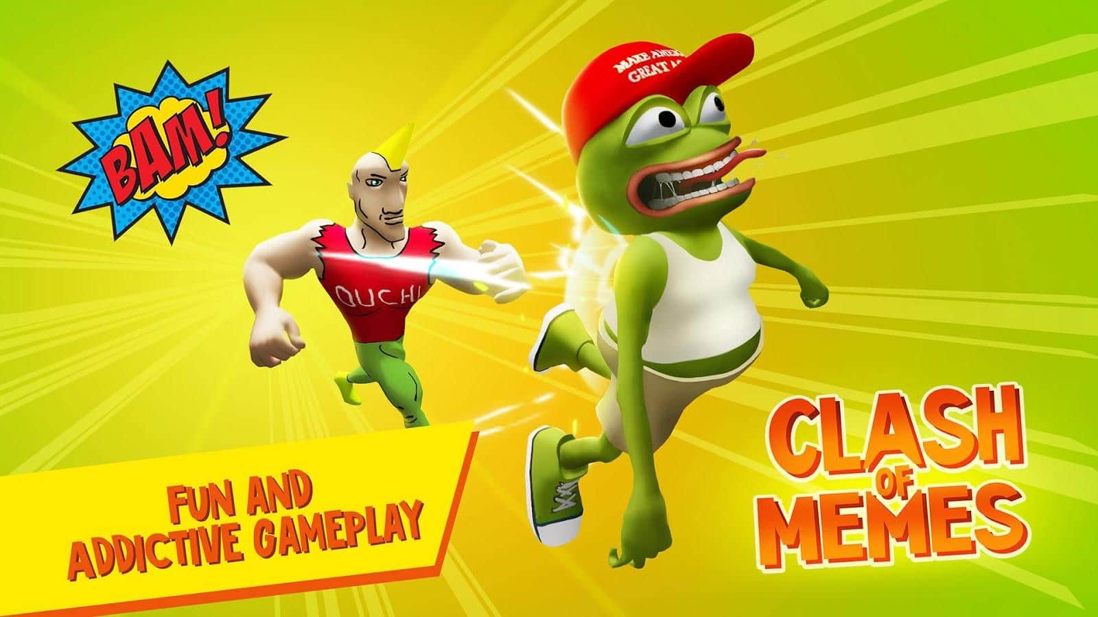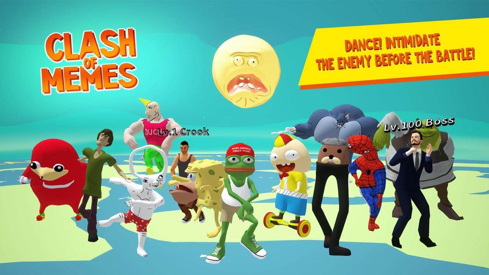Clash Of Memes: A Brawl Royale – увлекательная игра на андроид, где вы будете управлять мемами. Возьмите под свой контроль знаменитых мемов и примите участие в своеобразном файтинге среди знаменитых участников. Сражайтесь за общество плоской земли и выберите всех с огромной ананасовой пиццы. Эта игра порадует игроков различными мемами, различными танцами и дополнительным контентом. Используйте своего бойца против сильного противника и применяйте мощные и разрушительные удары. В этой игре вам не придется запоминать сложные комбинации, а просто нажимать кнопки. Побеждайте соперников и танцуйте во время ожидания чтобы запугать противника до начала боя.