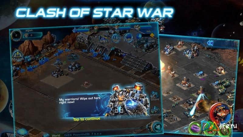 Clash of Star War – Создайте свою мощную космическую базу. Развивайте новые технологии, стройте оборонительные сооружения и укрепляйте свою армию перед предстоящей войной. Только если вы обеспечены в полной мере армией и передовыми технологиями вы сможете победить в этой войне. Для своего обогащения и прироста силы вам необходимо совершат набеги да ваших соседей. Их ресурсы – это важный компонент для поддержания вашей армии. Так-же с помощью ресурсов вы создаёте неприступные оборонительные комплексы.