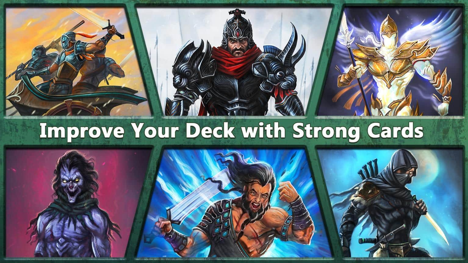 Clash of Warriors: 9 Legends – карточная игра на андроид, где вы будете сражаться за власть во всем мире. Эта игра перенесет вас во времена персидской империи, где вы будете собирать карты с легендарными воинами и магами. Соберите свой непобедимый отряд воинов и примите свое участие в эпических битвах с врагами за право править всем миром. Ваша армия будет состоять из магов, воинов, демонов, мифических существо и монстров. Тщательно продумывайте каждый свой шаг и предназначение карт в бою и побеждайте врагов в увлекательных турнирах. По ходу игры улучшайте своих воинов и делайте их более сильными и выносливыми.