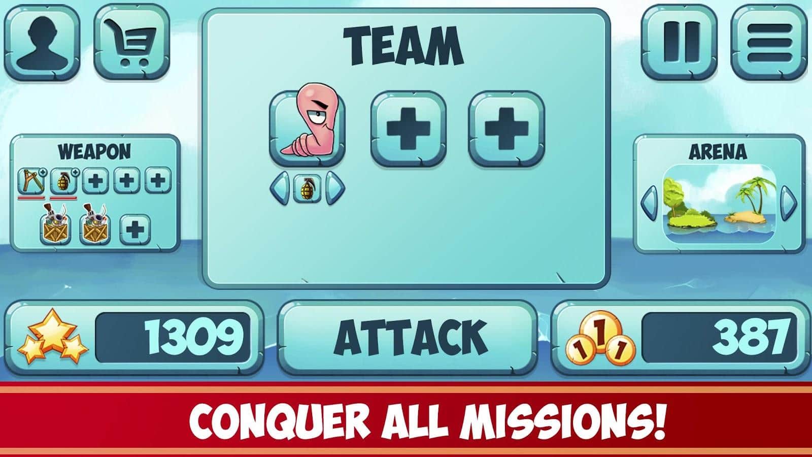 Clash of Worms – веселая игра на андроид, где вы примите свое участие в битве червей. В этой игре вы попадете в мир где живут два непримиримых клана червей, которые сошлись в решающей битве, которая определит сильнейшего. Выбирайте за какую из двух сторон вы будете вести битву и начинайте войну. Разрабатывайте свою тактику ведения боя и применяйте для этого различное оружие, начиная с рогаток и заканчивая бомбами. В этой пошаговой битве вы должны стать более точным, хитрым и оригинальным, чтобы победить своего соперника. Путешествуйте по различным локациям игры и открывайте новых героев и миры. В этой игре вас ждут многочисленные и разнообразные арены для боя, забавные червячки и множество разного оружия.