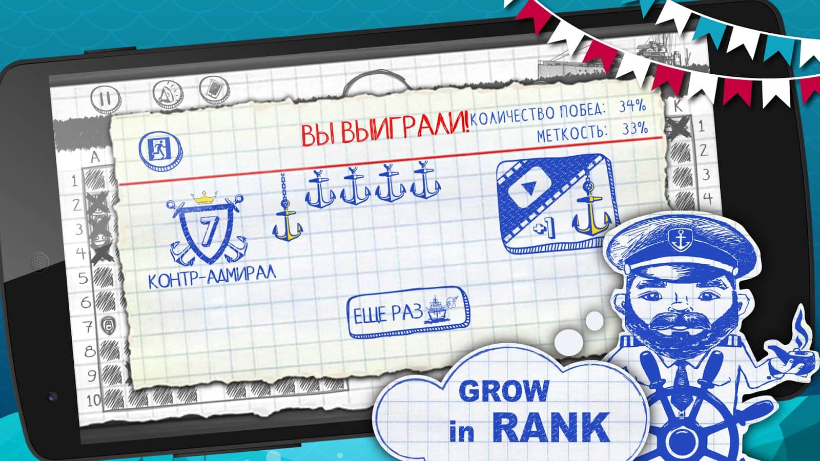 Classic Battleship – отличная настольная игра пришедшая из 90-х годов. Эта игра классический морской бой перенесет вас в детство, где вы играли с друзьями в эту игру и потопляли корабли противника. Эта игра порадует вас несколькими режимами игры, где вы сможете играть один против компьютера, с другом на одном устройстве или против игроков со всего мира. Расставляйте свои корабли и подводные лодки на специальной карте огромной морской акватории и стреляйте из всех орудий по кораблям противника. Подбивайте одну за другой лодки противника и выходите победителем из морского боя. Игра порадует игроков отличной рисованной графикой.